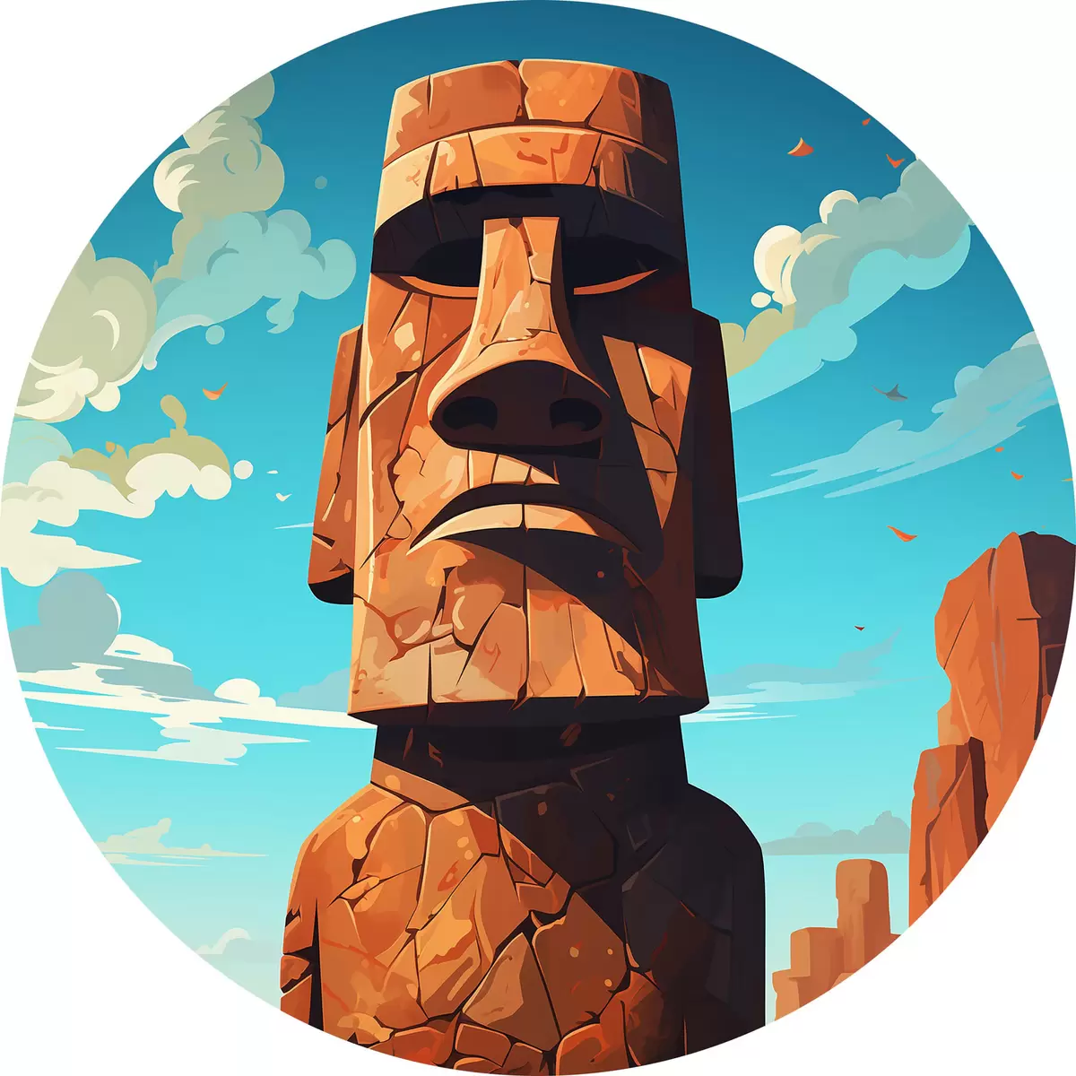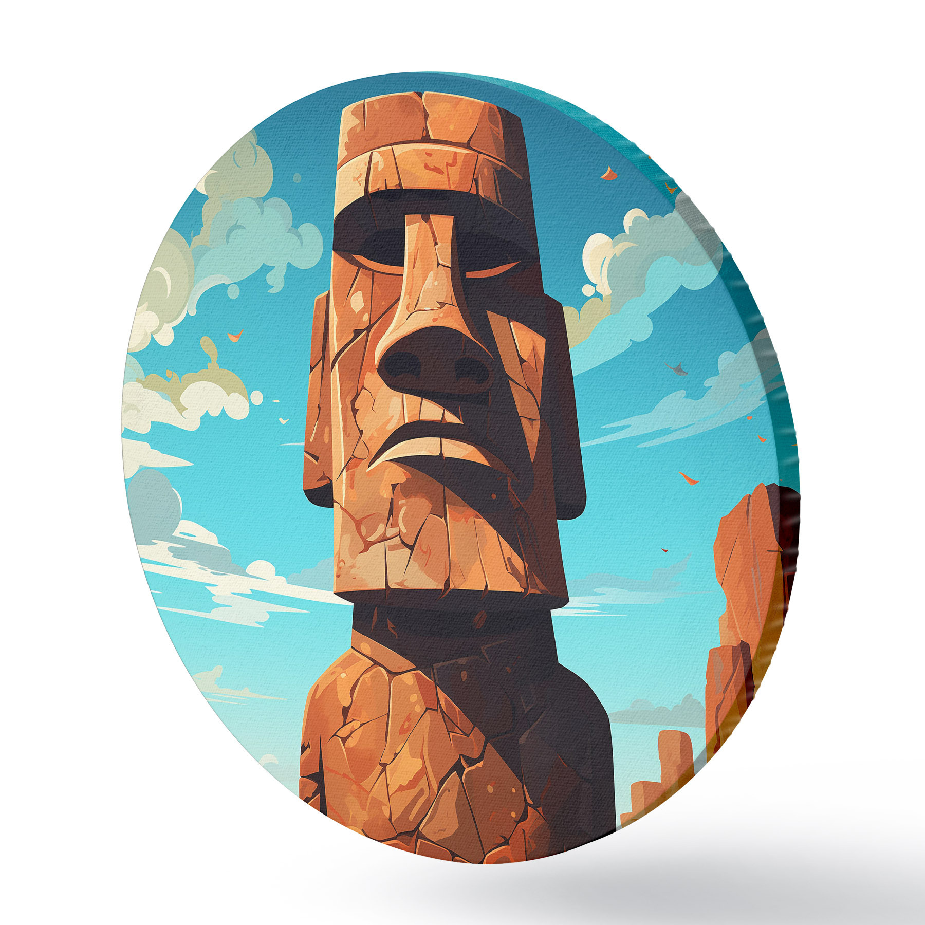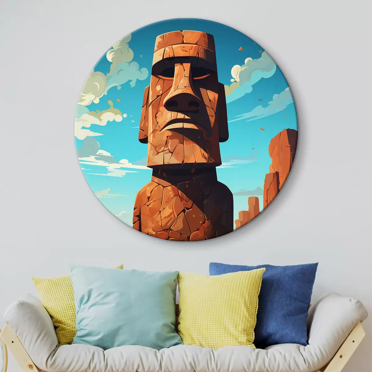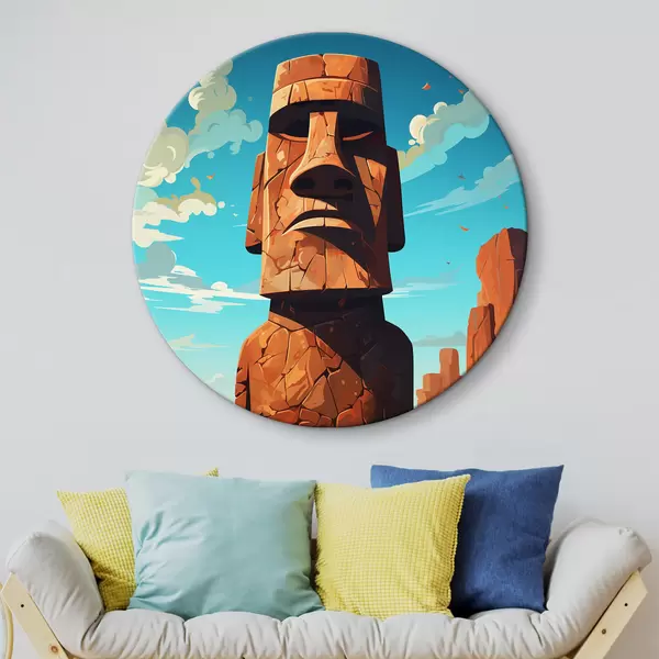 Ronde schilderijen Oude stenen gezicht onder blauwe hemel r37255