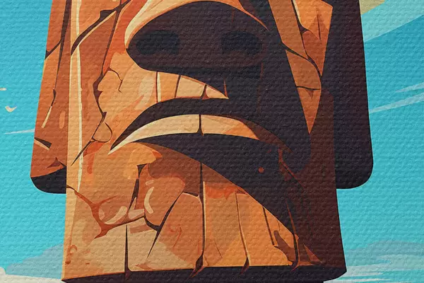 Afbeelding Oude stenen gezicht onder blauwe hemel Nr r37255