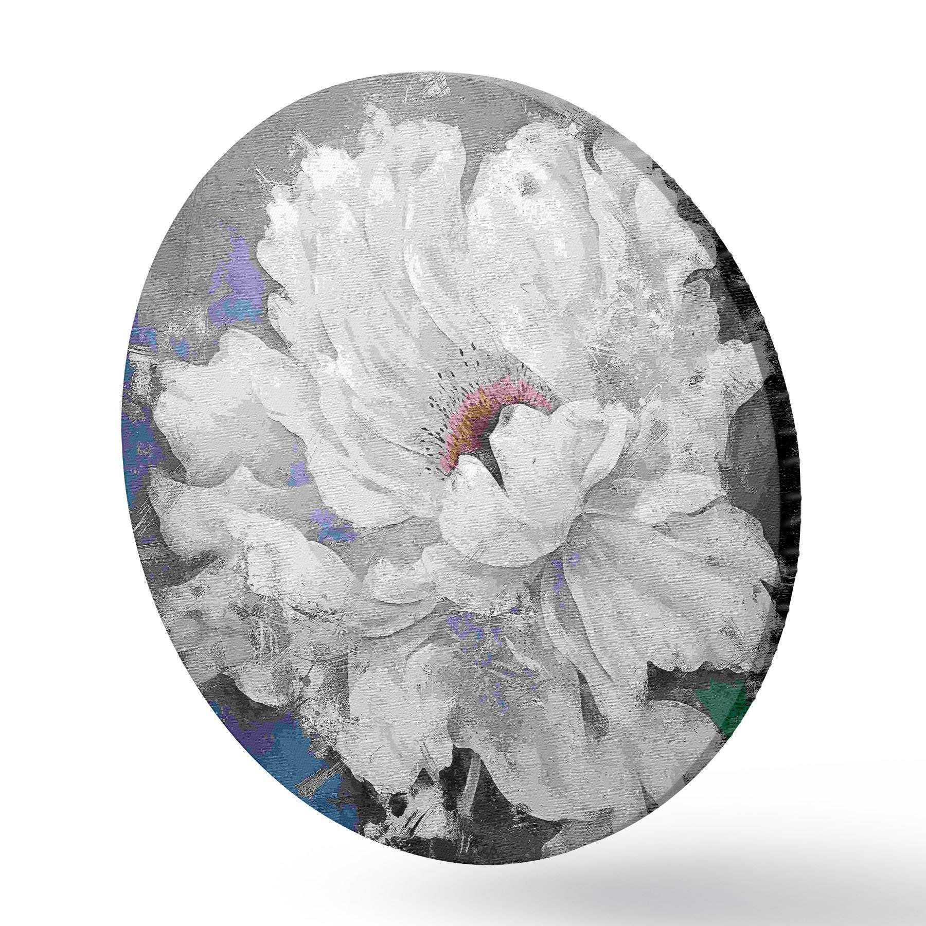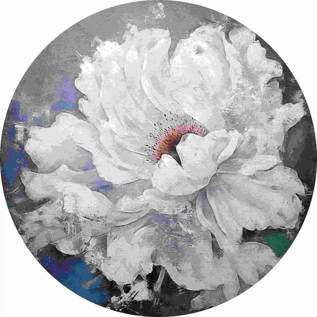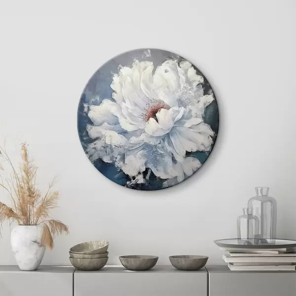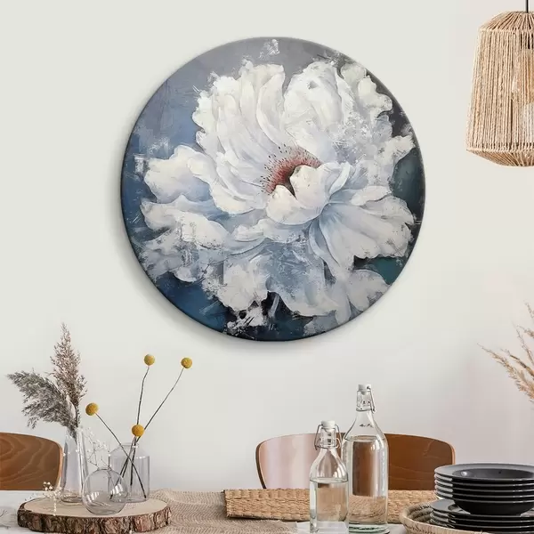 Ronde schilderijen Witte bloem op blauwe achtergrond r37262