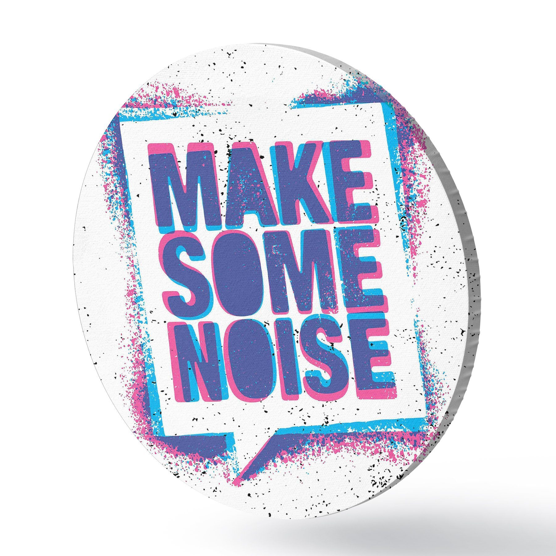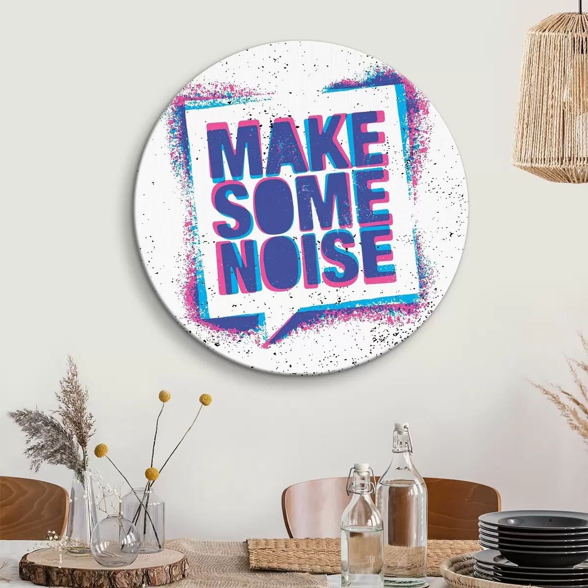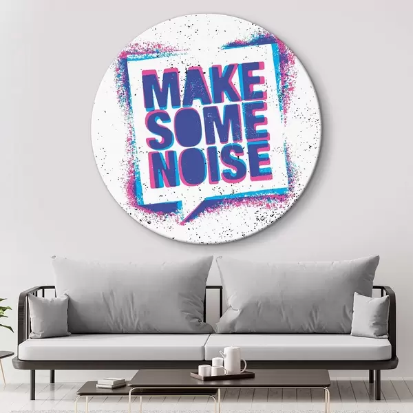 Ronde schilderijen Wit vierkant met paarse en blauwe tekst r37290