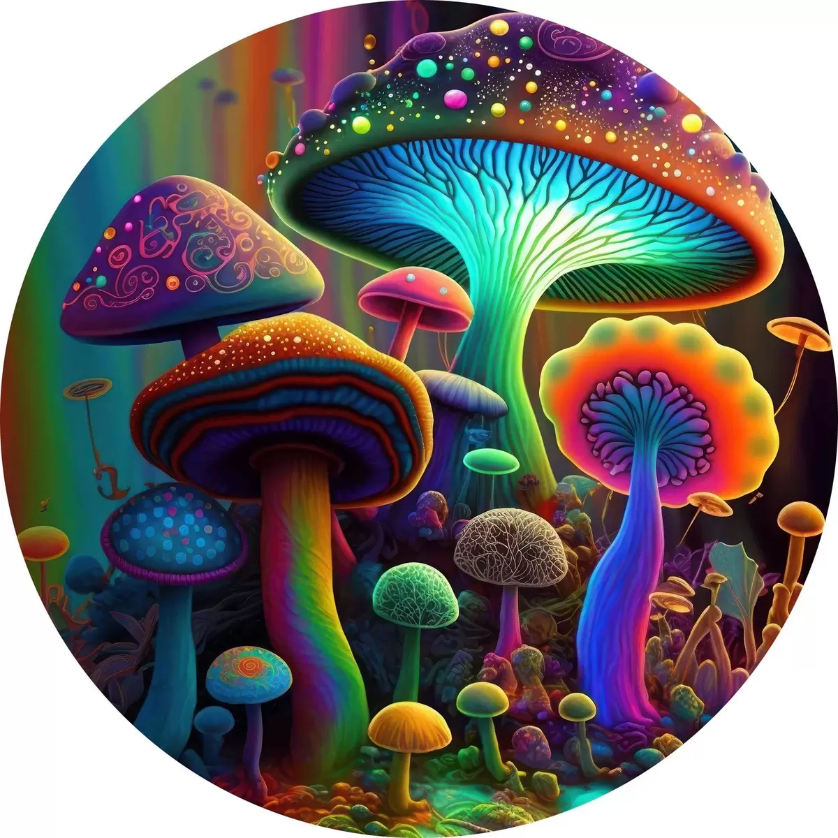 Ronde schilderijen Kleurrijke paddenstoelen r37291