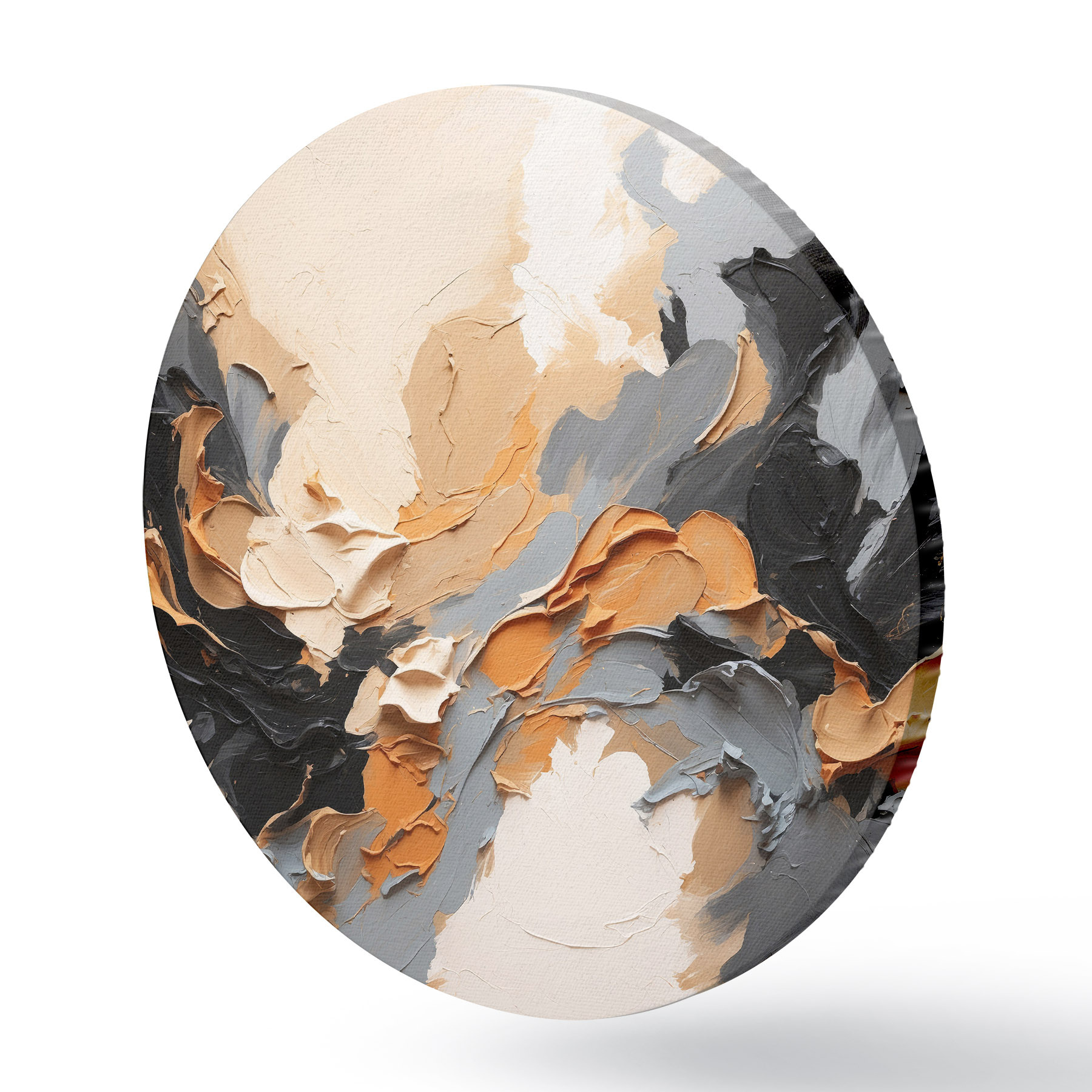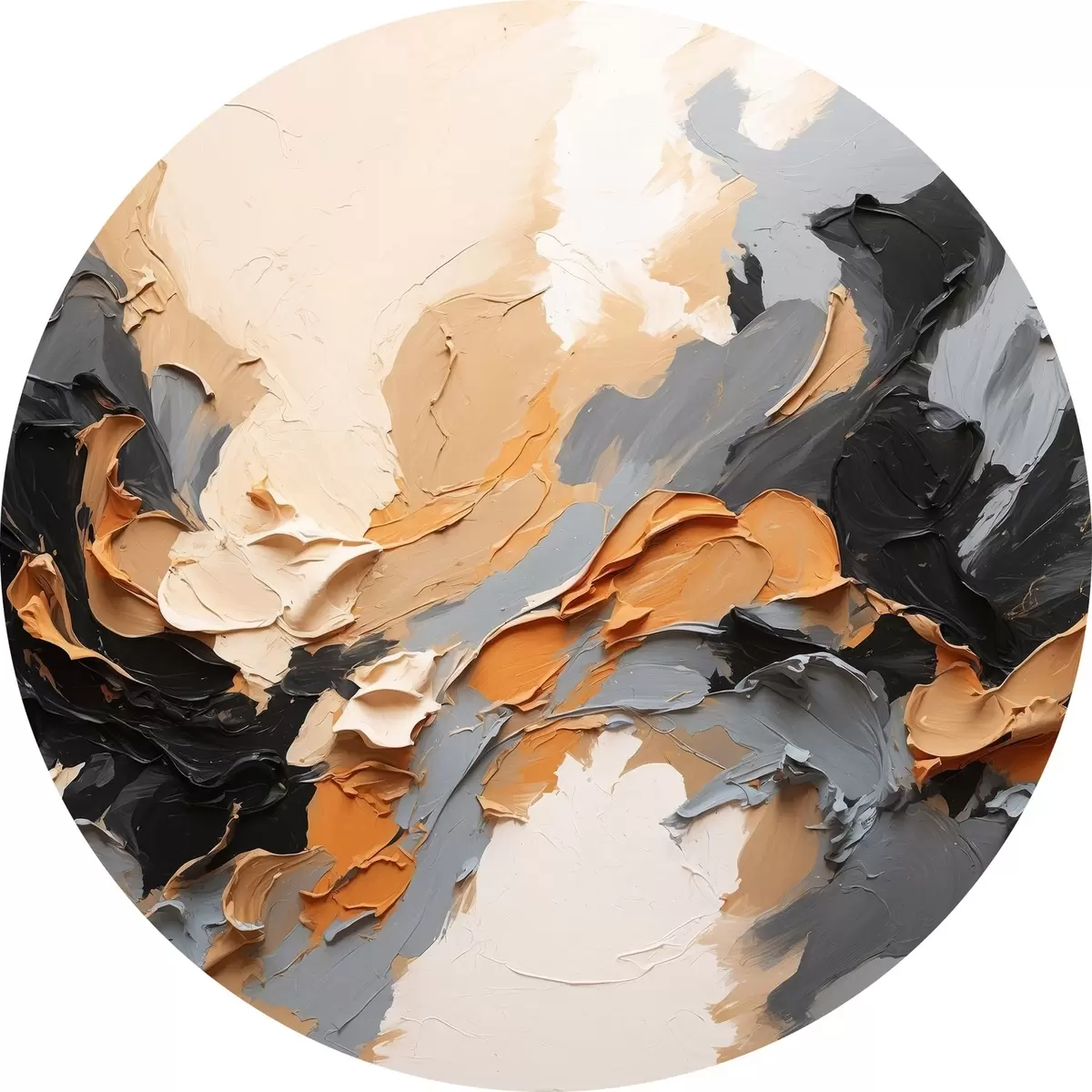 Ronde schilderijen Abstract olieverfschilderij met zwarte, blauwe en beige verf r37328