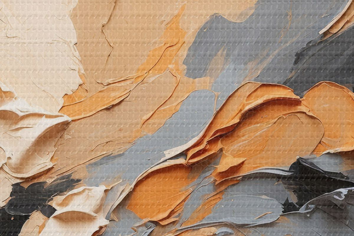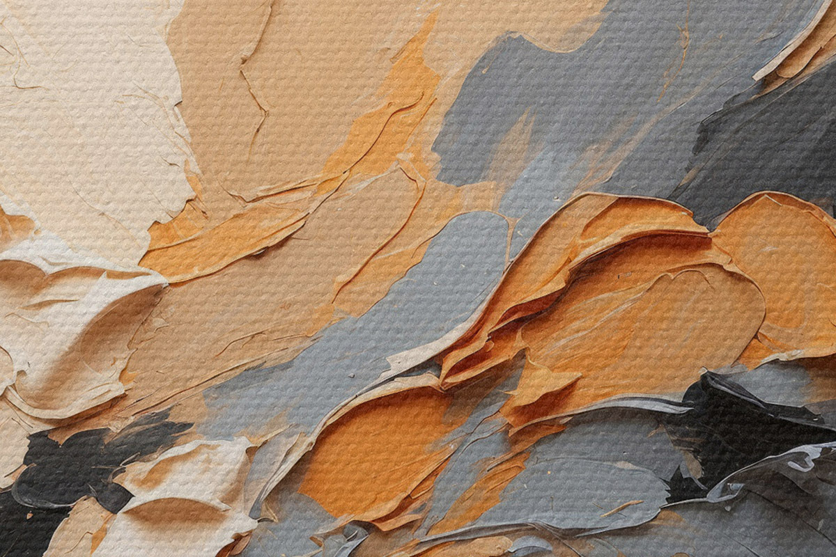 Afbeelding Abstract olieverfschilderij met zwarte, blauwe en beige verf Nr r37328