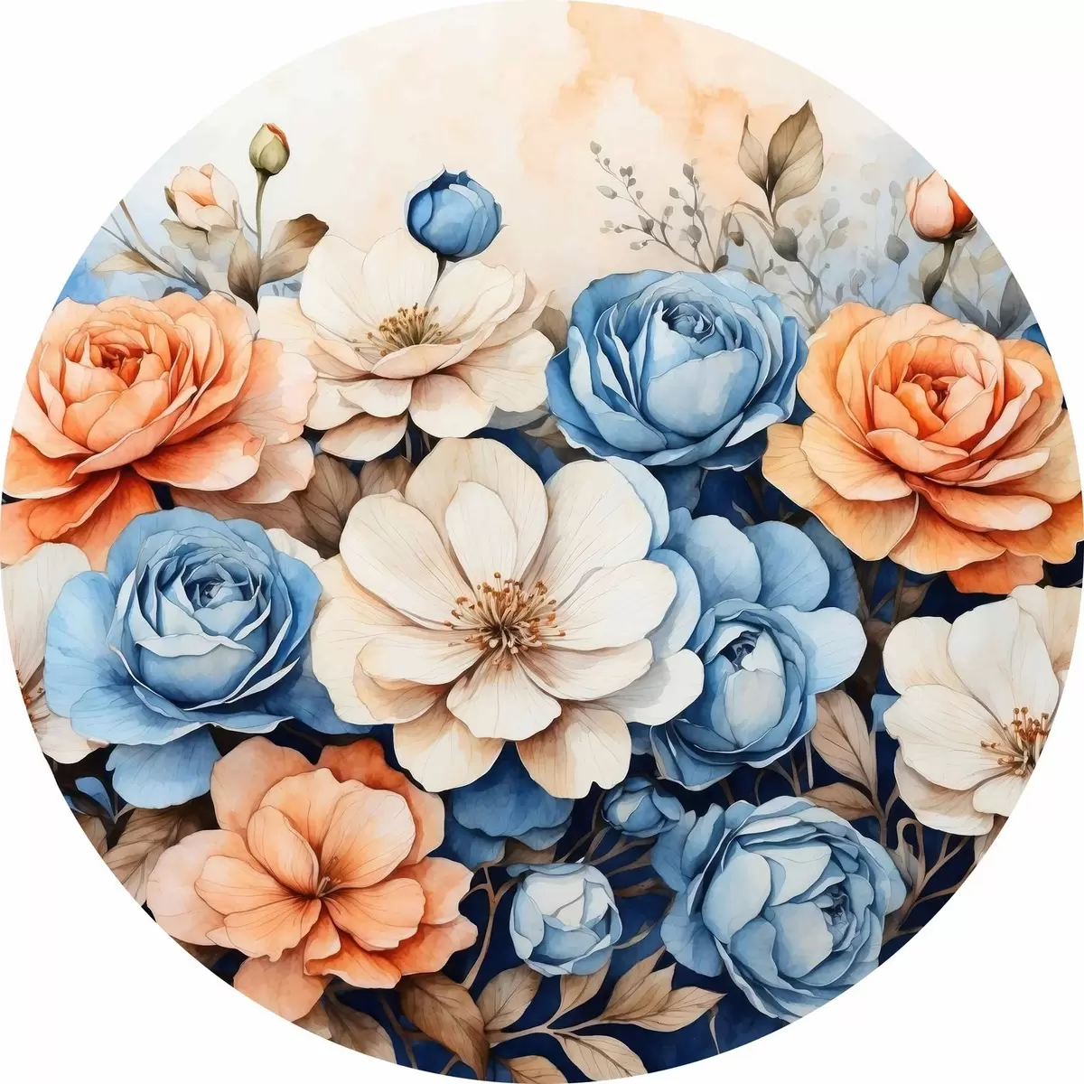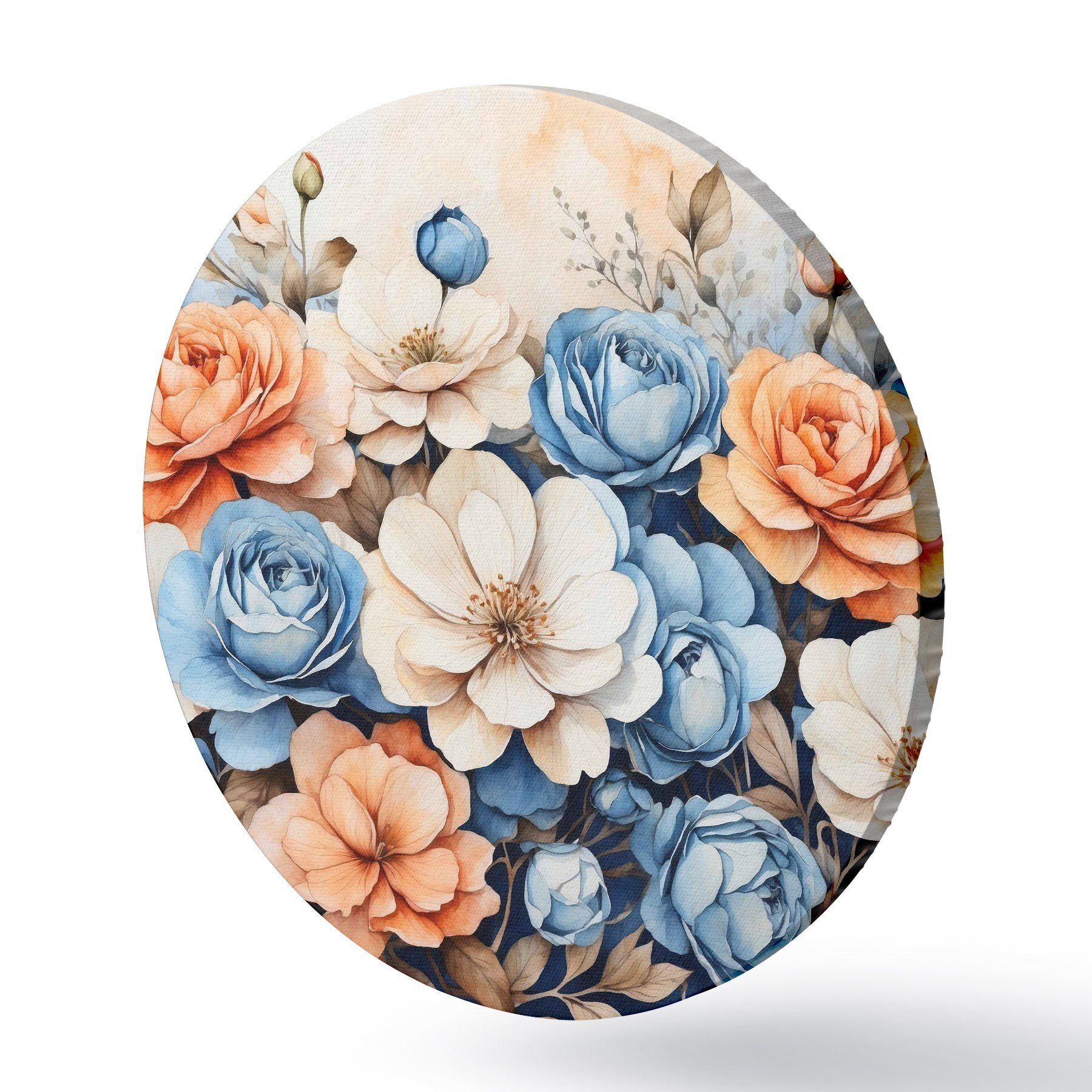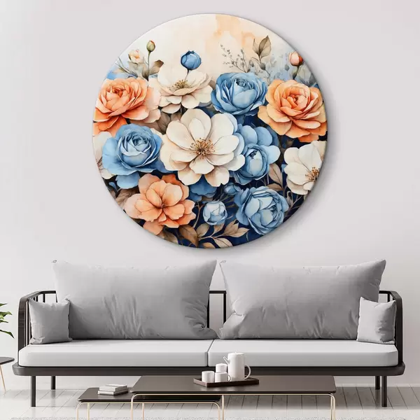 Ronde schilderijen Afbeelding van bloemen op een blauwe achtergrond r37335