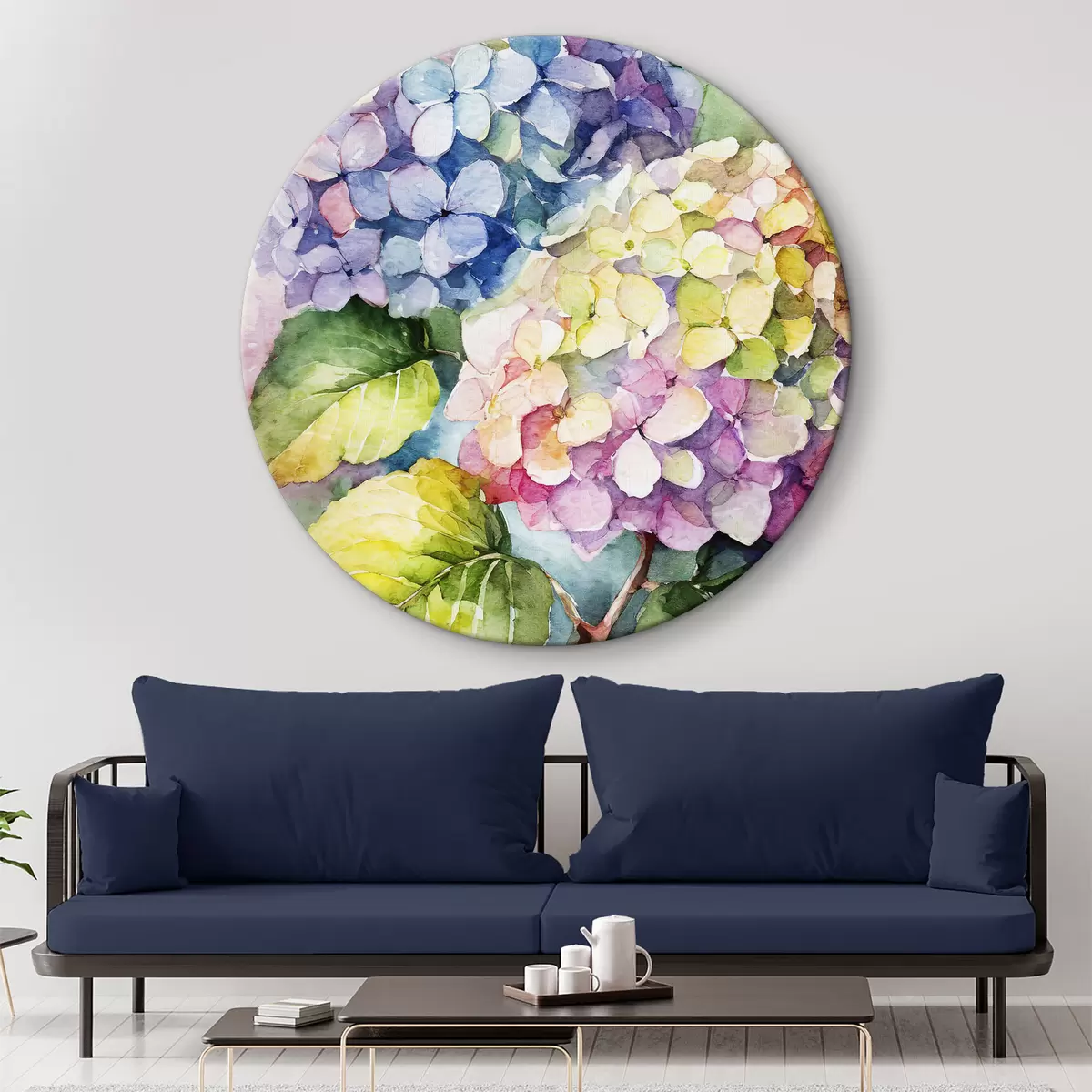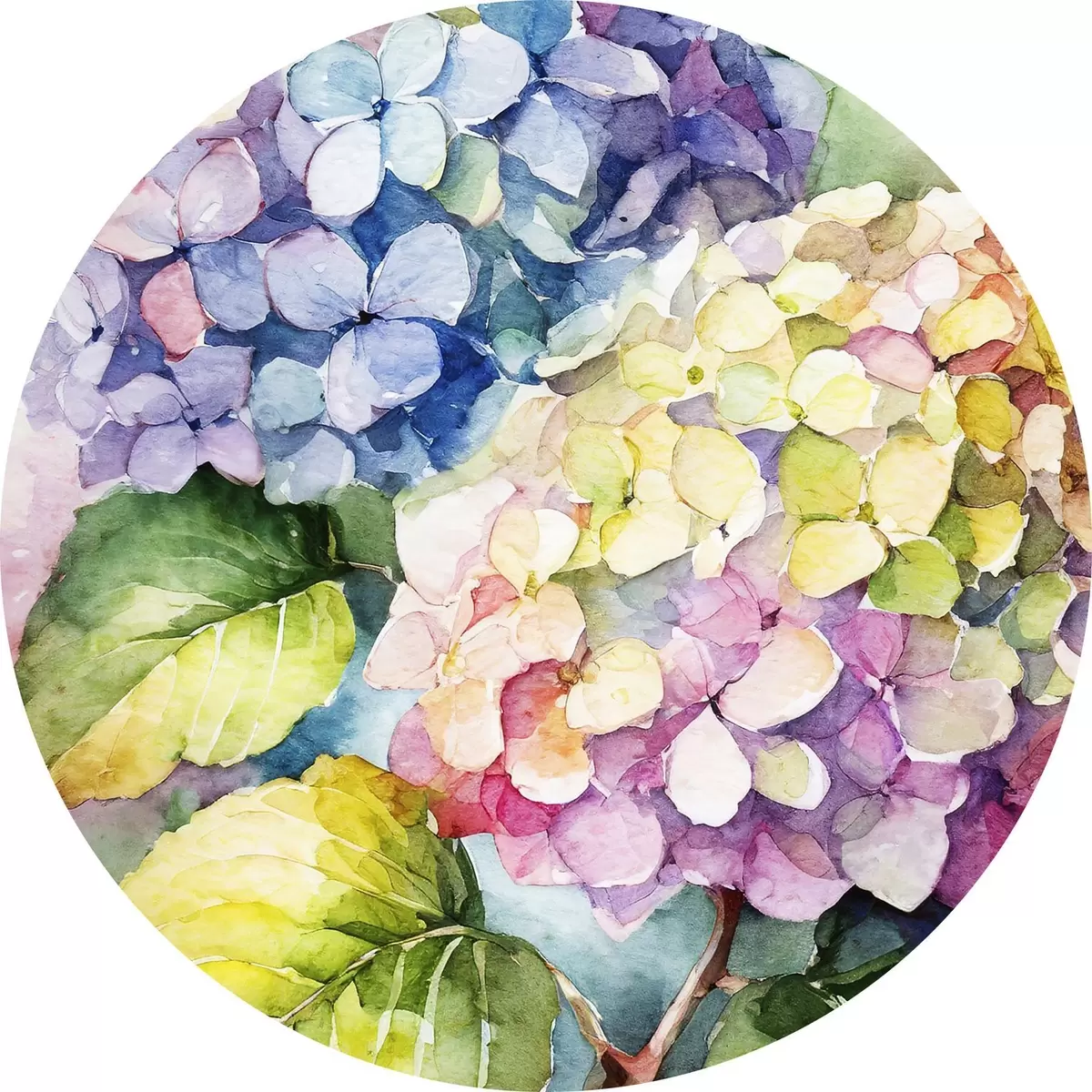 Ronde schilderijen Hortensia aquarel, zomerbloemen, natuurlijke kleuren r37342