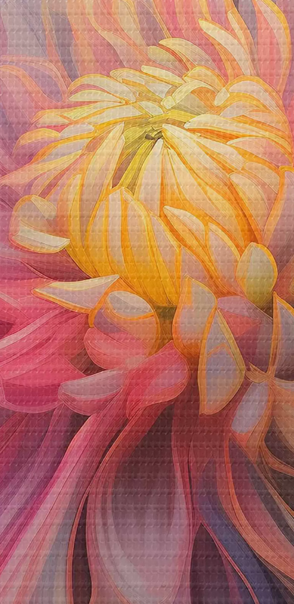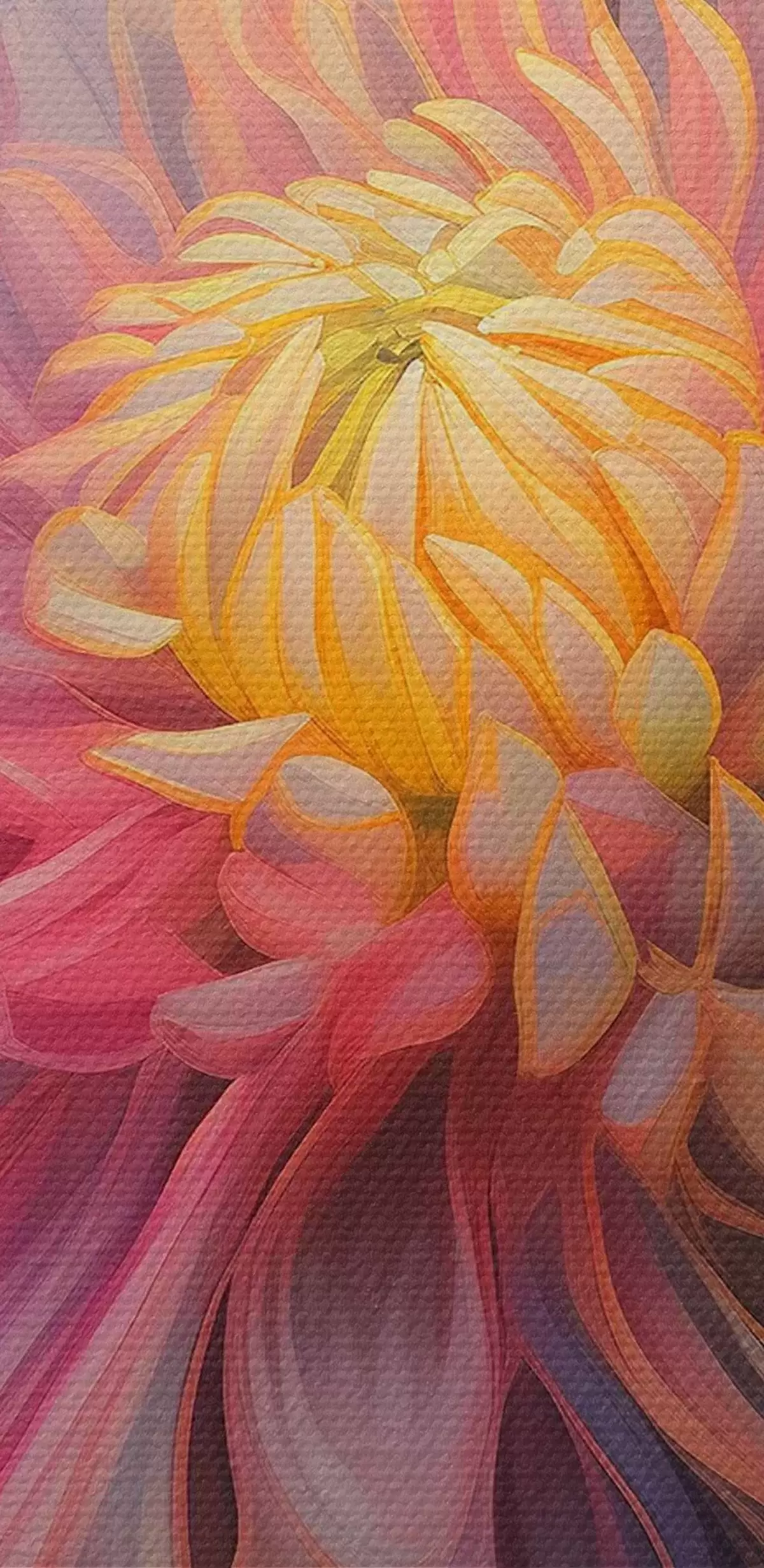 Het schilderij kan direct na ontvangst worden opgehangen. Het schilderij wordt opgespannen op een 2 cm breed houten spieraam.