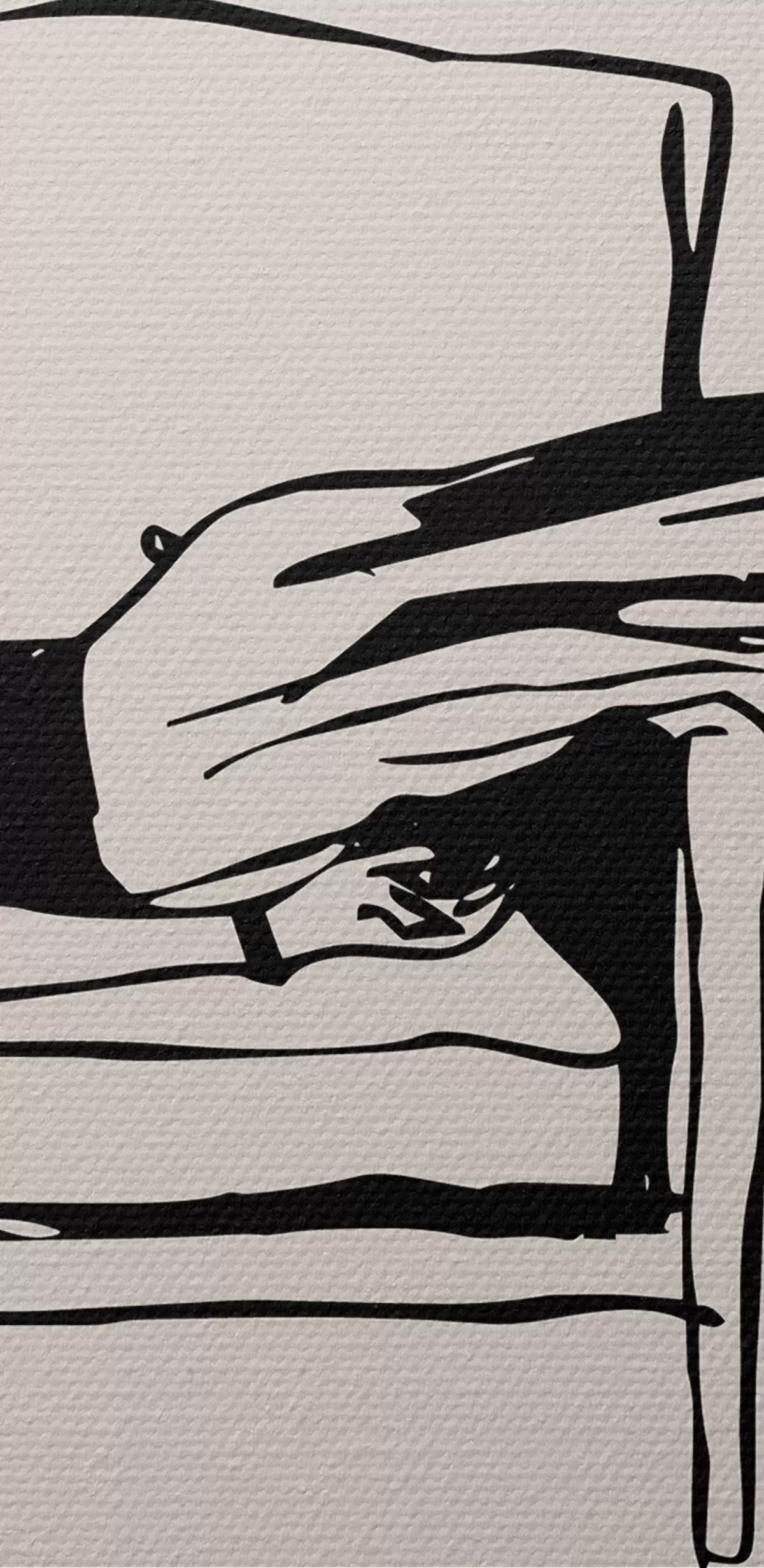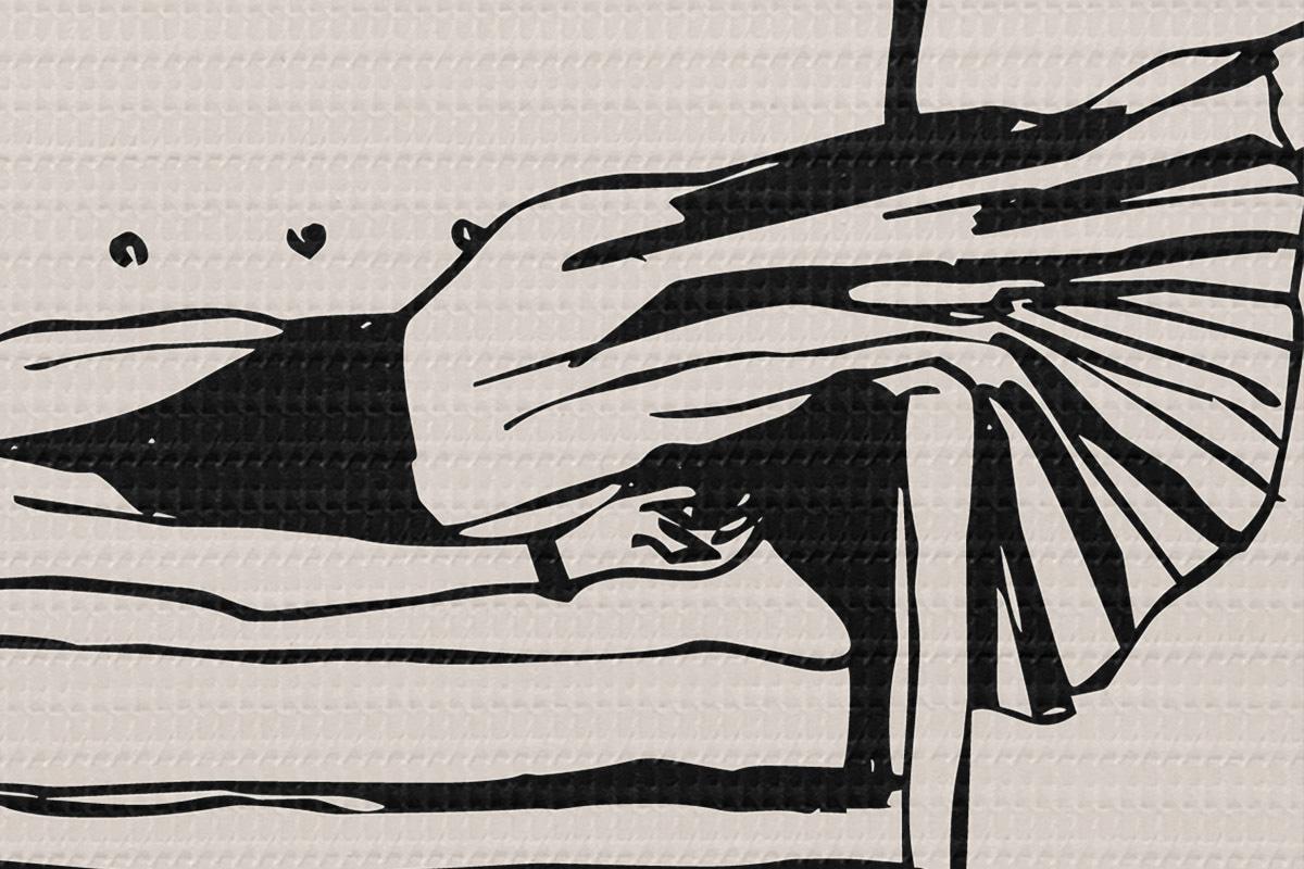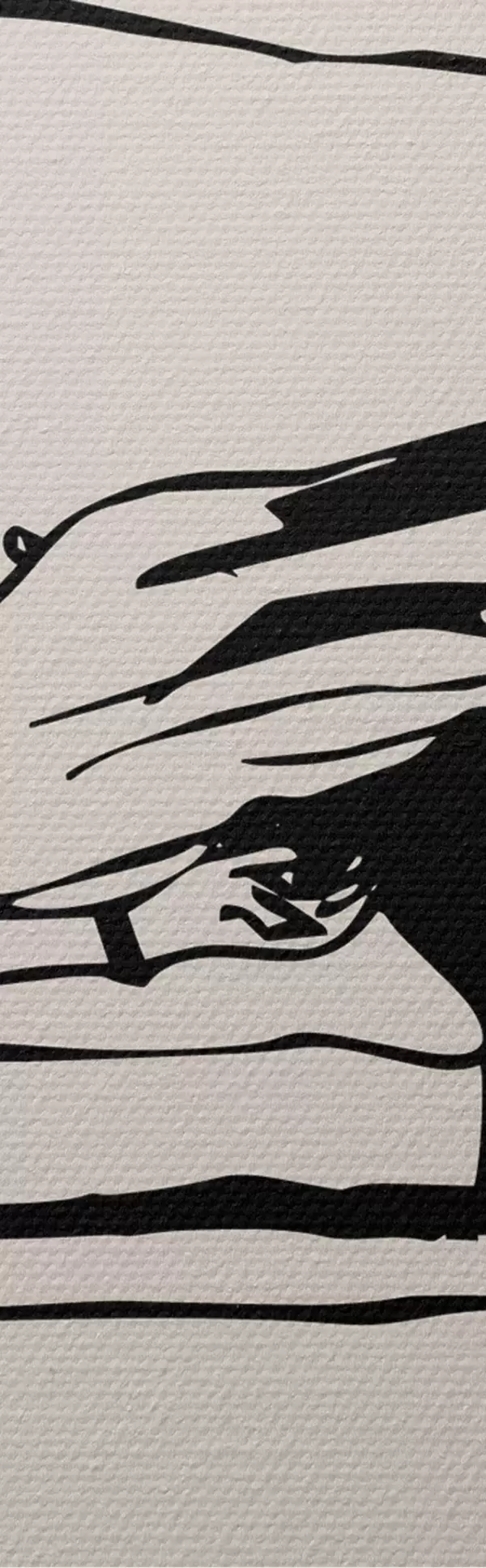 Om het doek op te spannen op spielatten zonder de afbeelding te beschadigen, gebruiken we gespiegeld beeld.