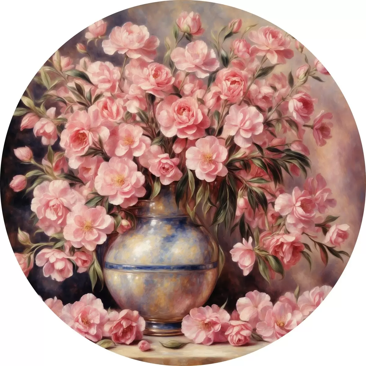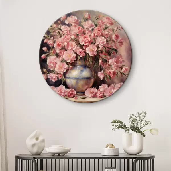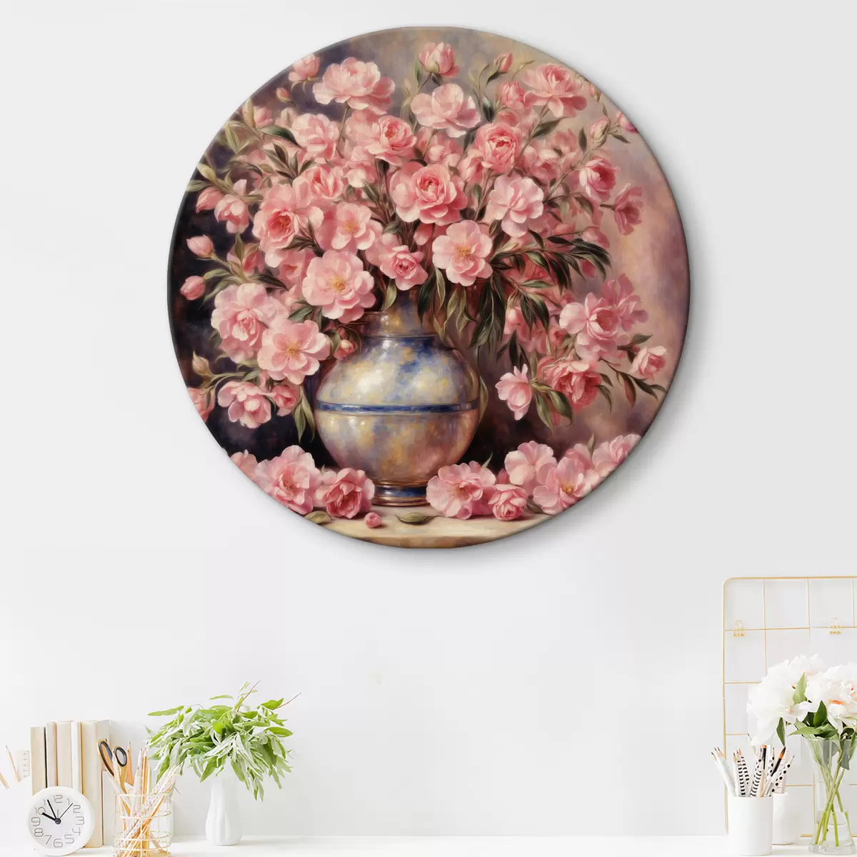 Ronde schilderijen Roze boeket in de stijl van Auguste Renoir r37438