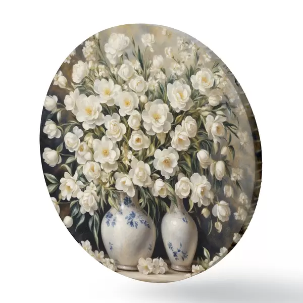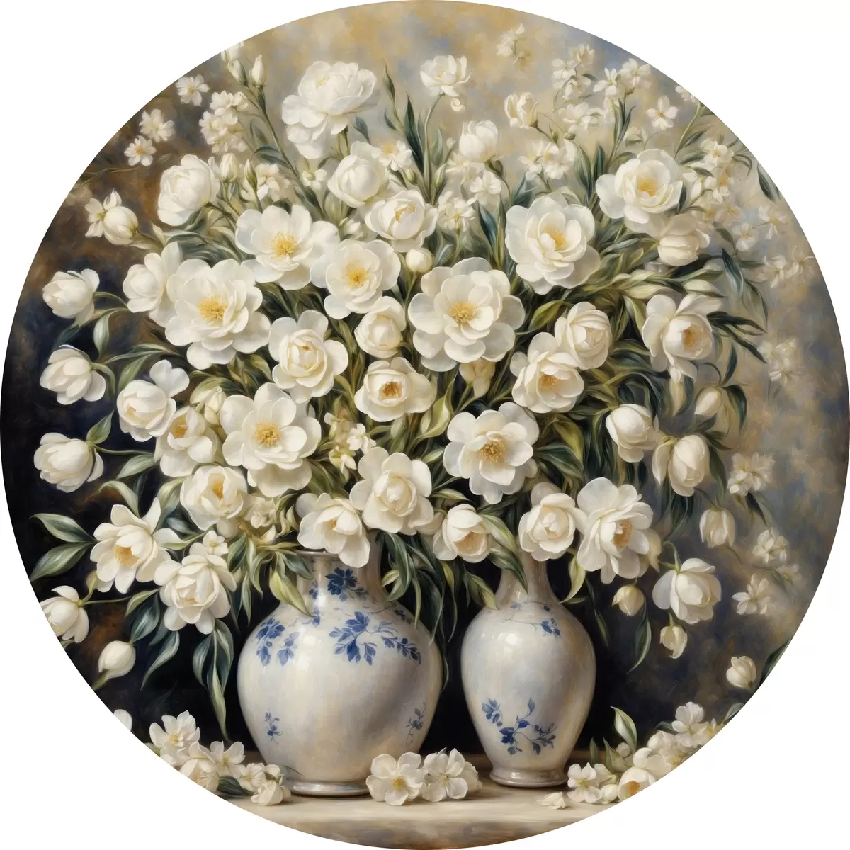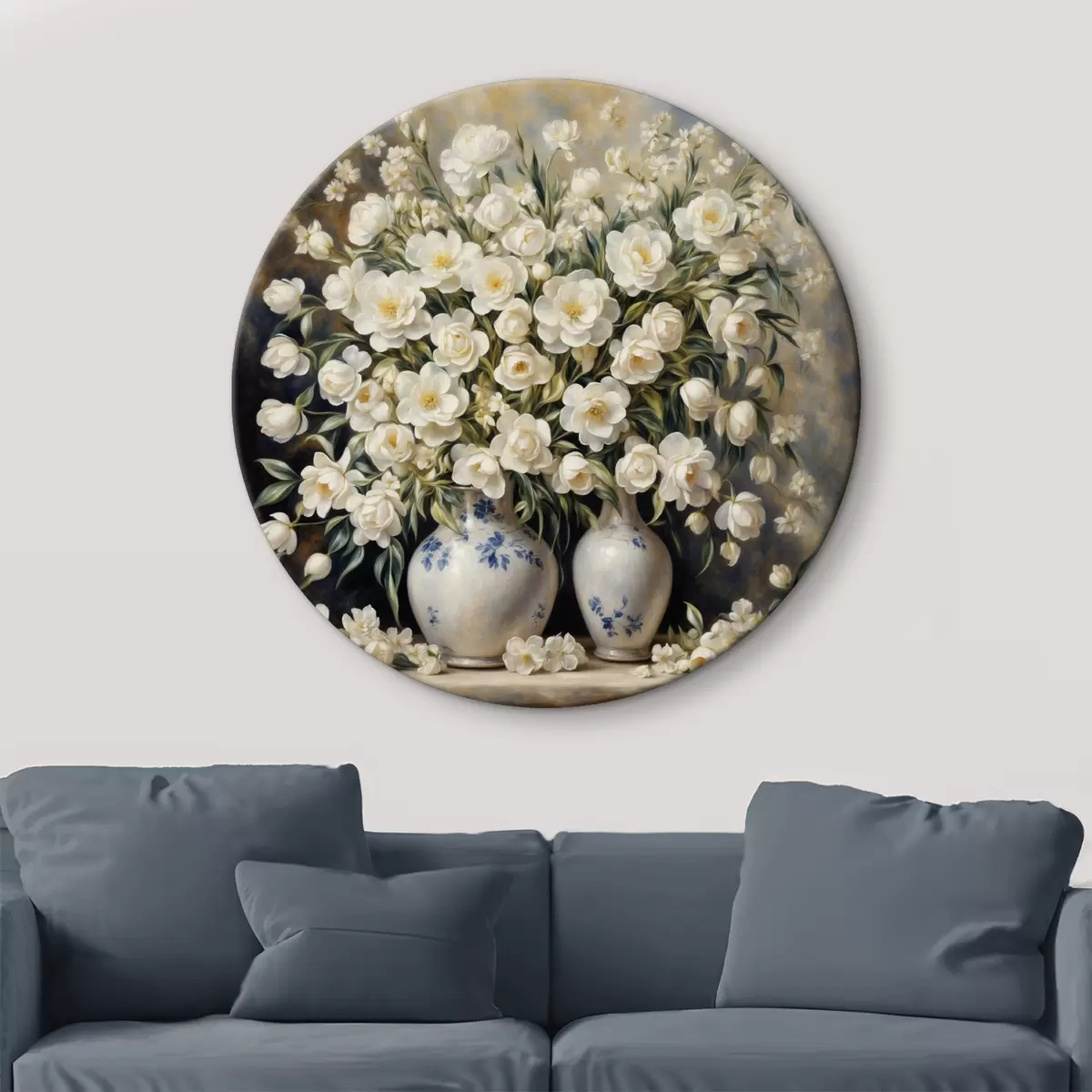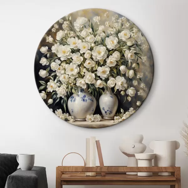 Ronde schilderijen Witte vaas met een groot boeket witte bloemen r37440