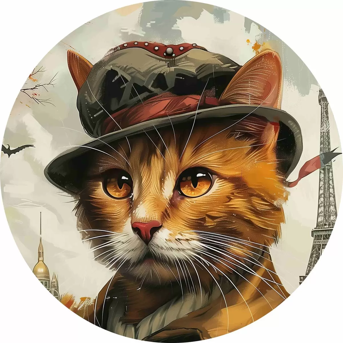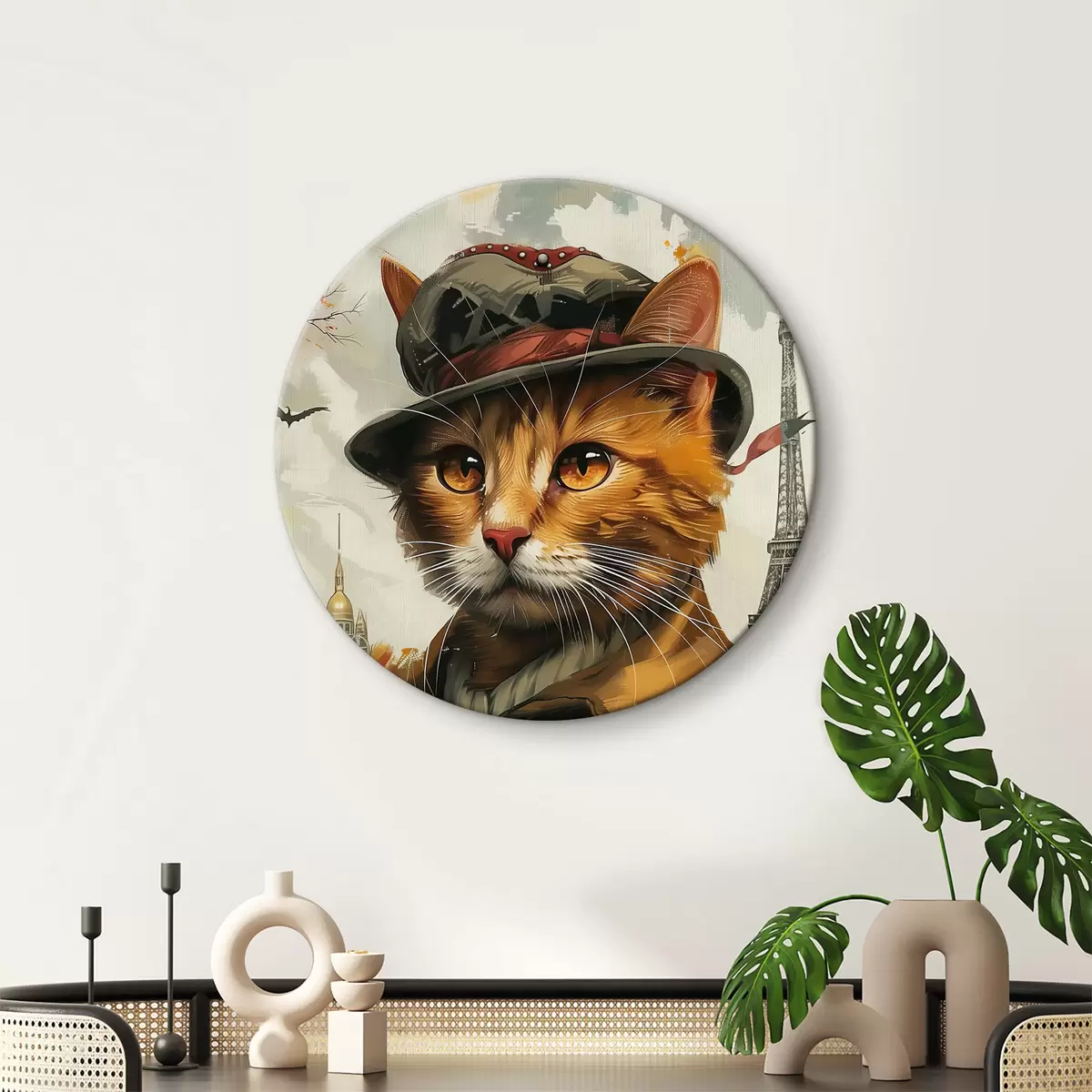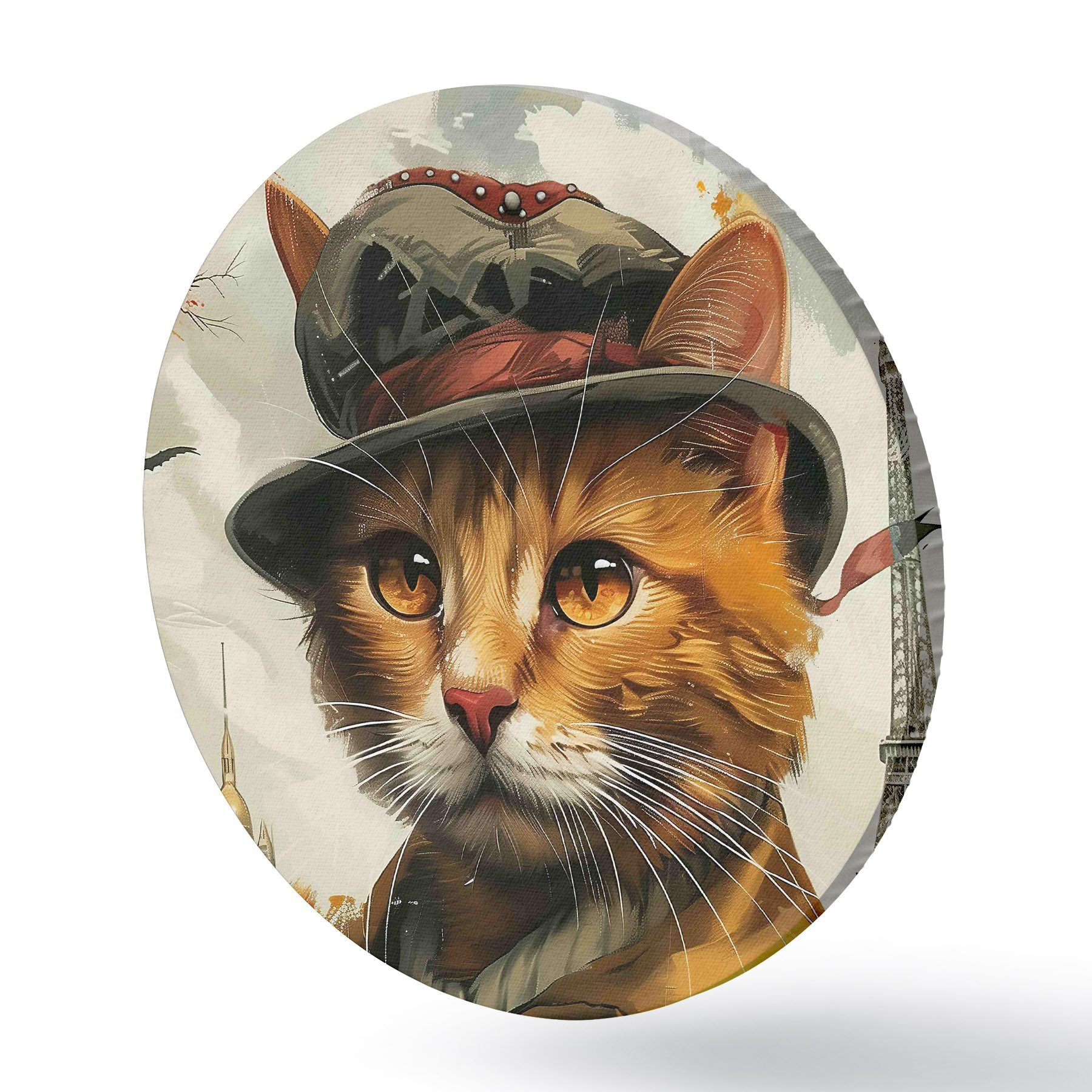 Ronde schilderijen Kat met hoed en jas r37457