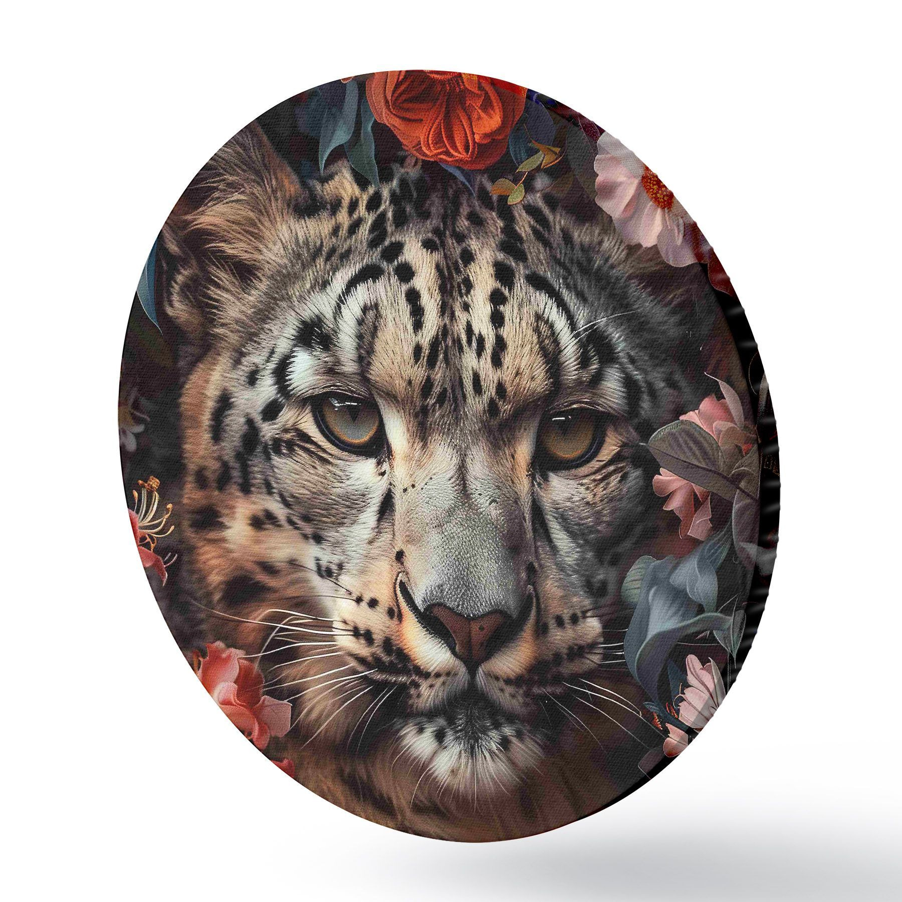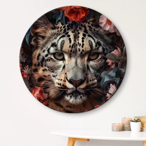 Ronde schilderijen Luipaard in de bloementuin r37464
