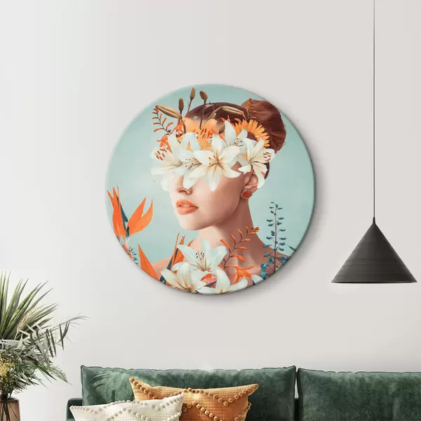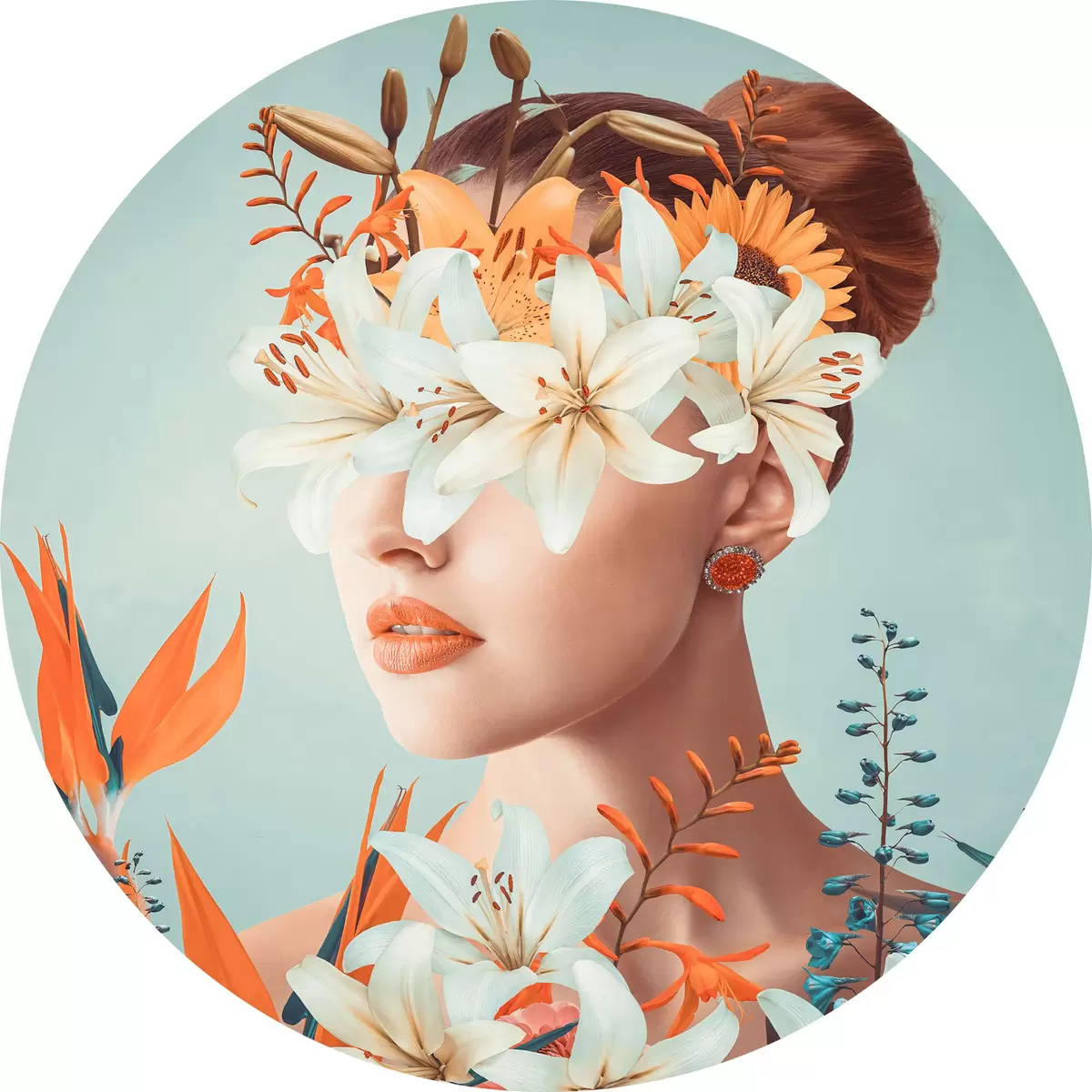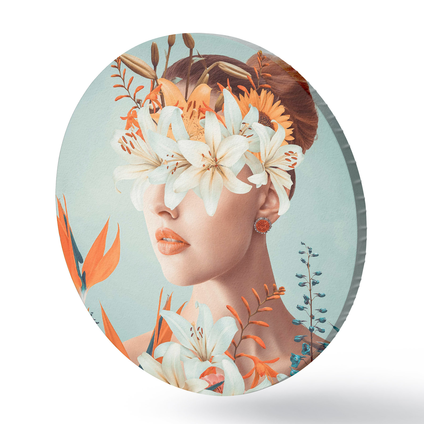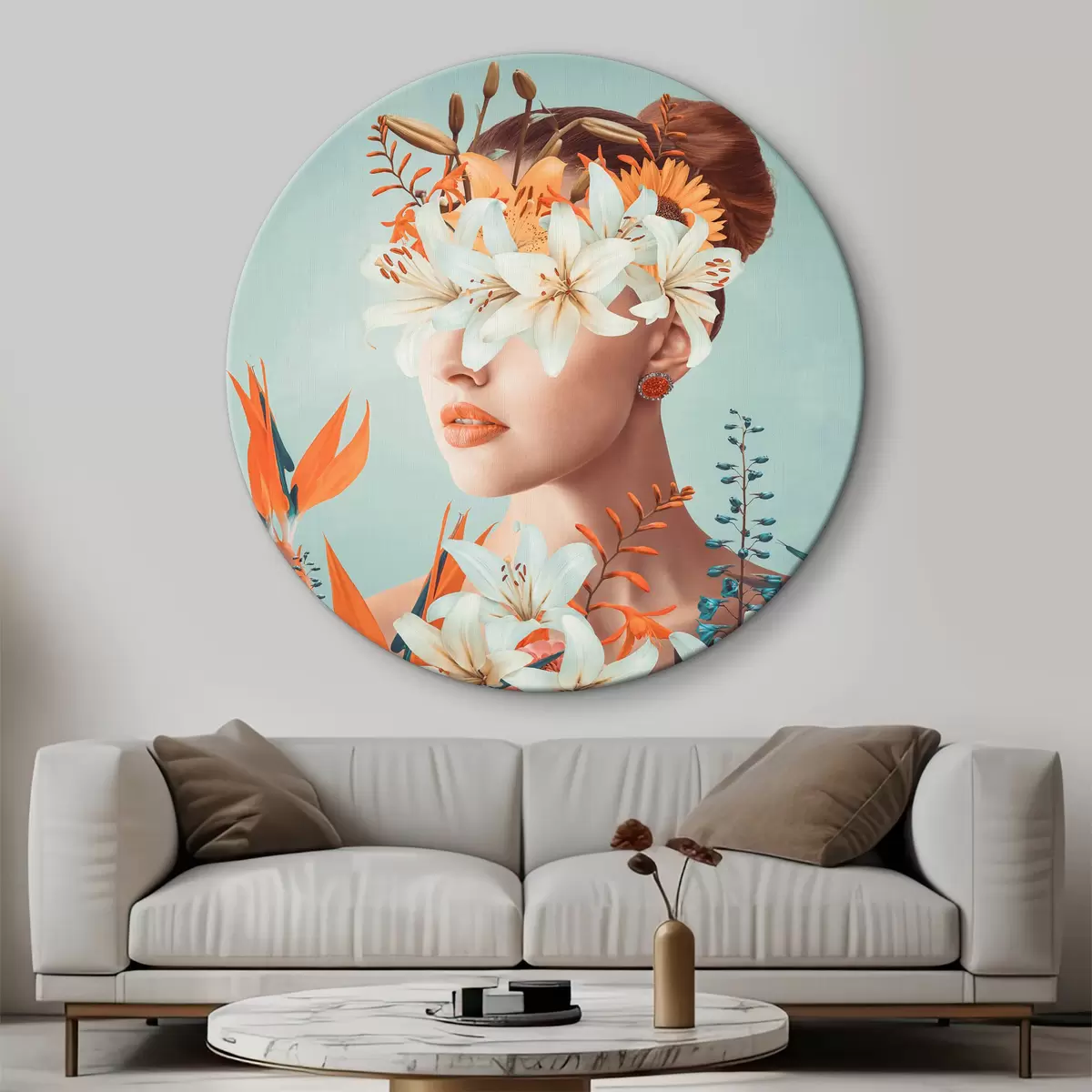 Ronde schilderijen Vrouw met bloemen rond haar ogen r37480