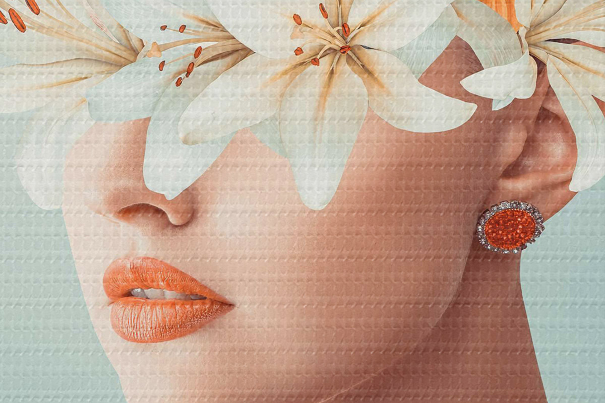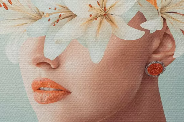 Afbeelding Vrouw met bloemen rond haar ogen Nr r37480