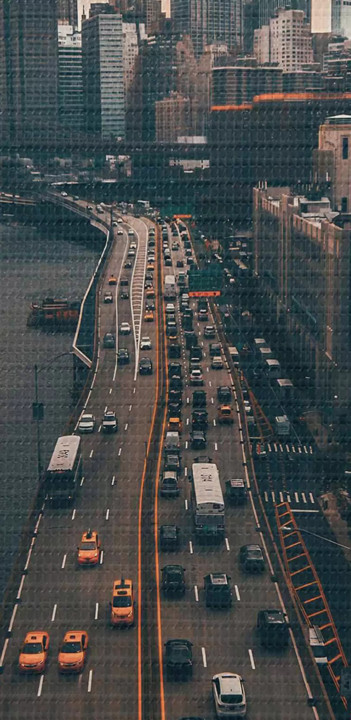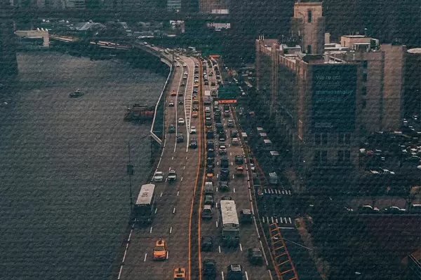 Afbeelding Brug over water met auto's en gebouwen op de achtergrond Nr r37482