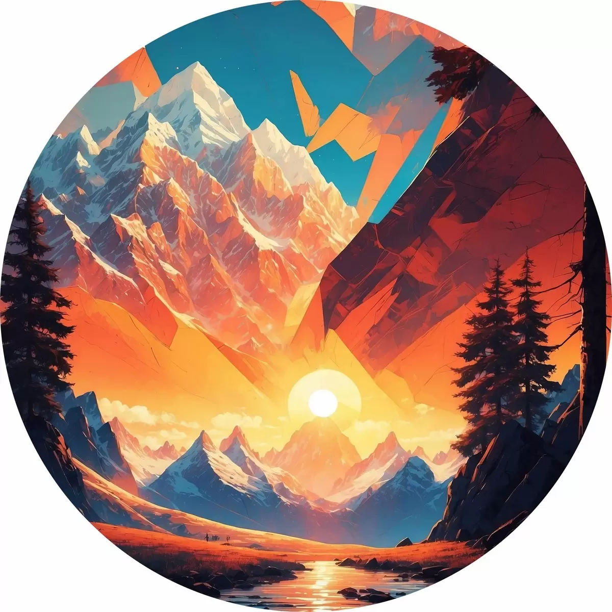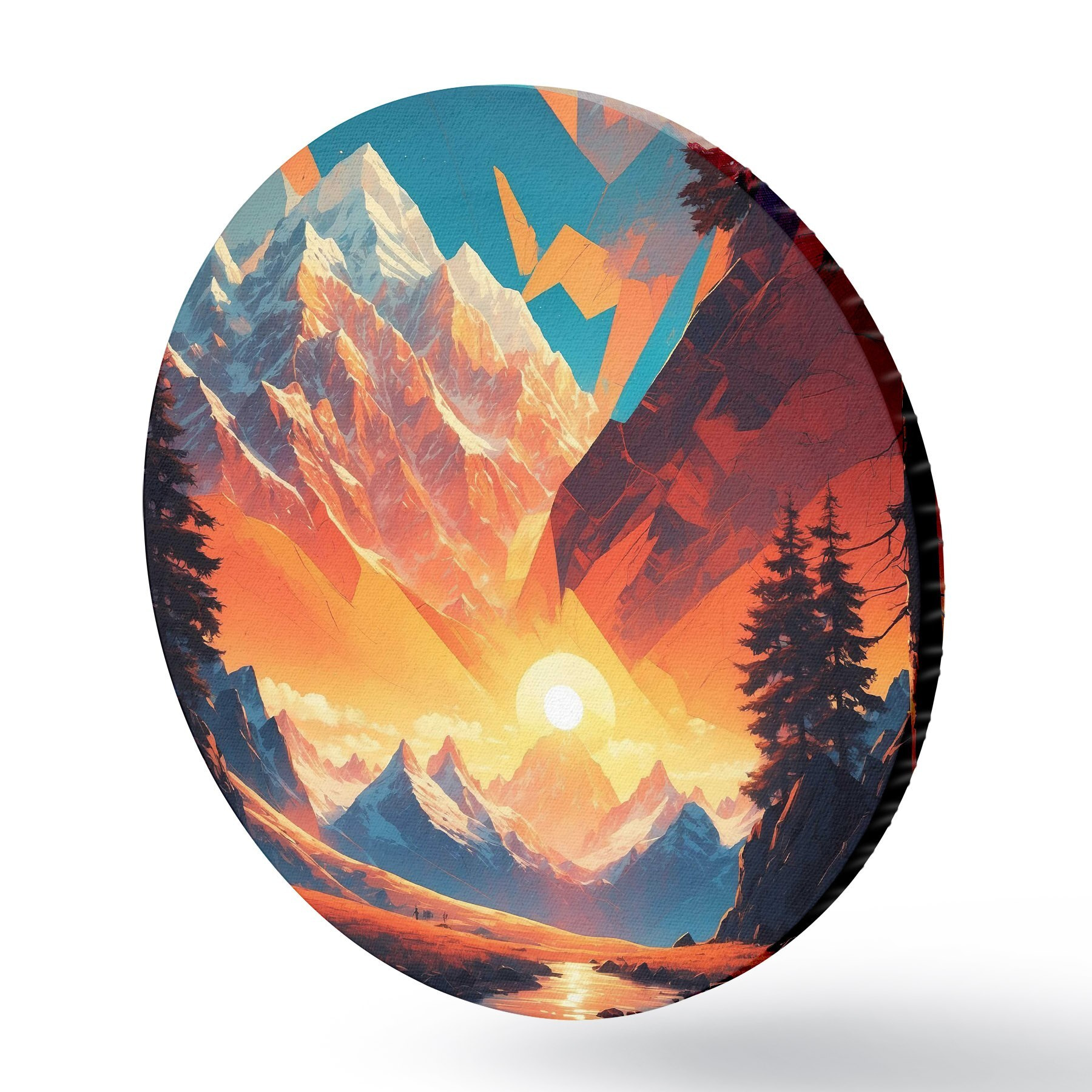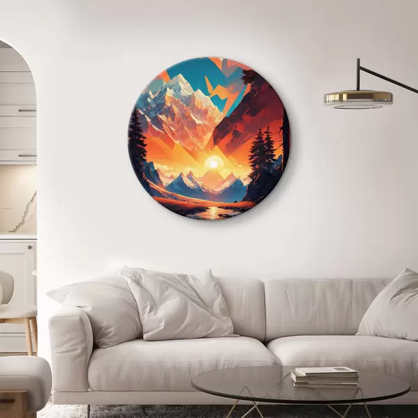 Ronde schilderijen Berglandschap met bomen en bergen r37532