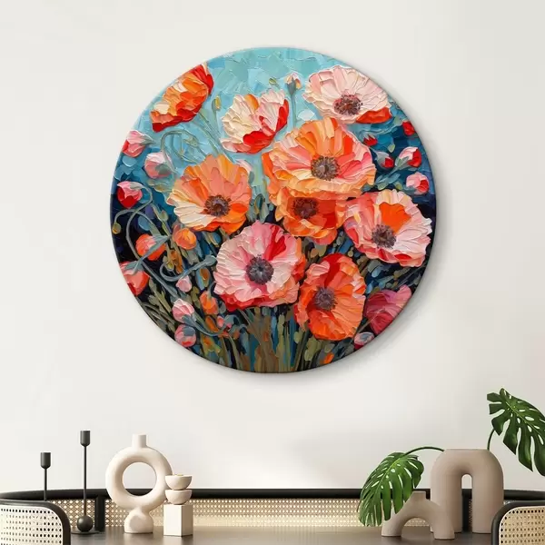 Het schilderij kan direct na ontvangst worden opgehangen. Het schilderij wordt opgespannen op een 2 cm breed houten spieraam.