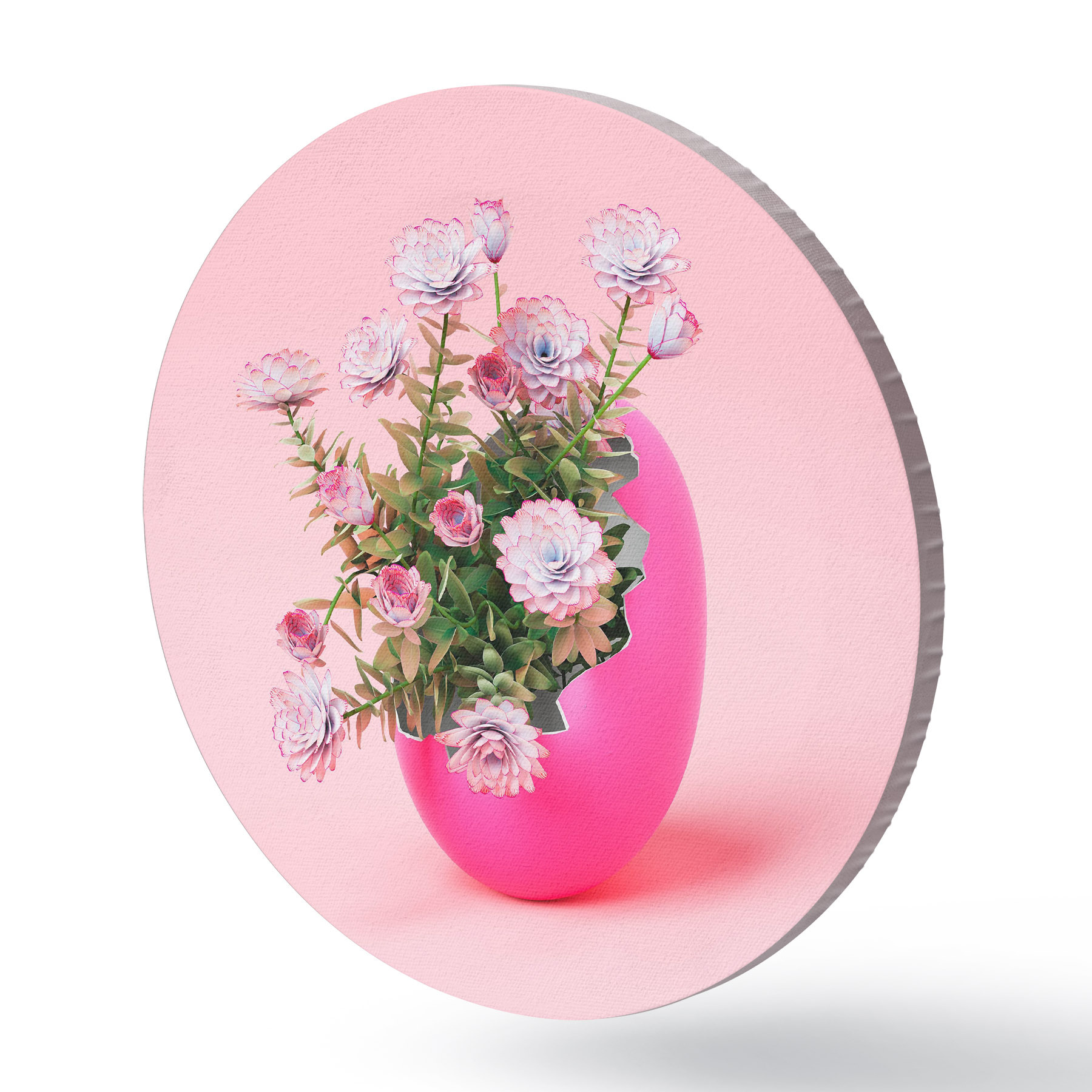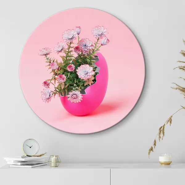 Ronde schilderijen Kleurrijke bloemen in een speelse vaas r37756