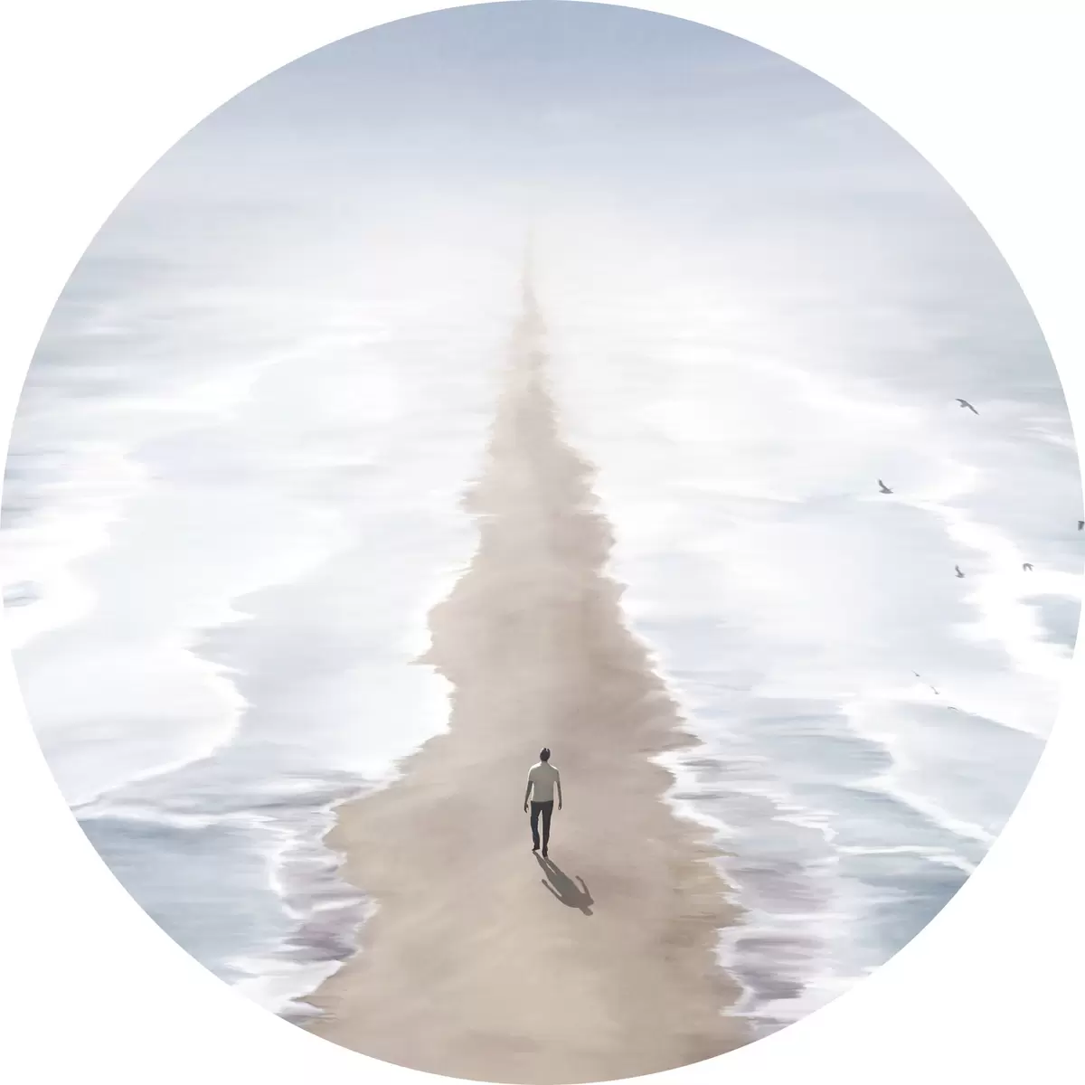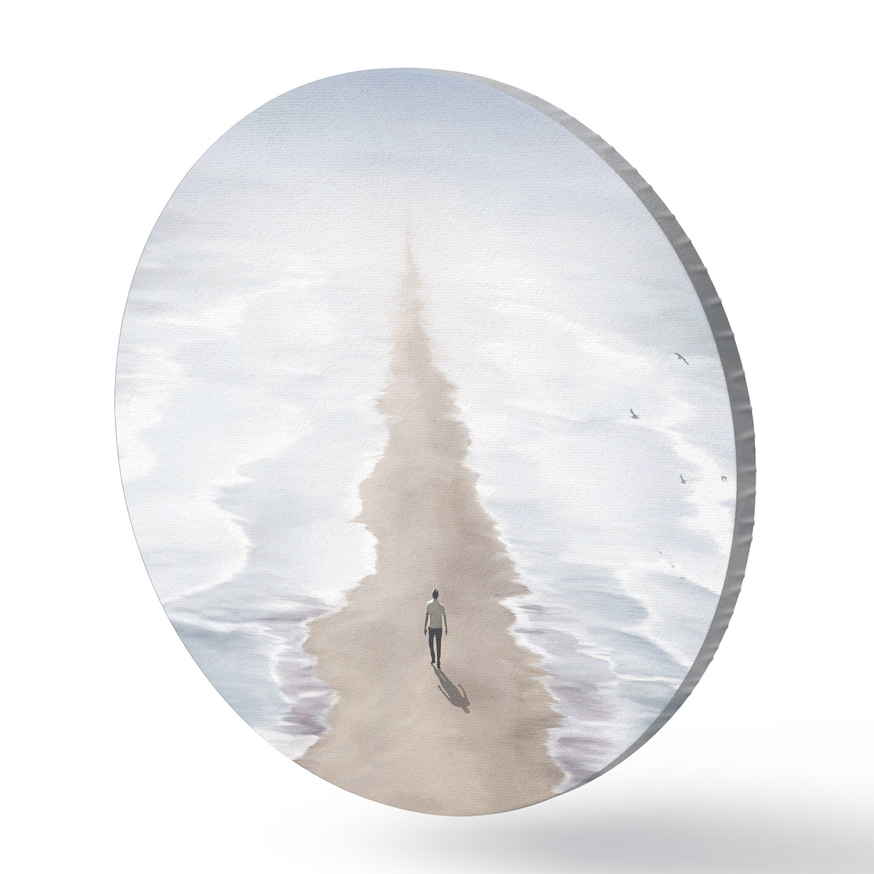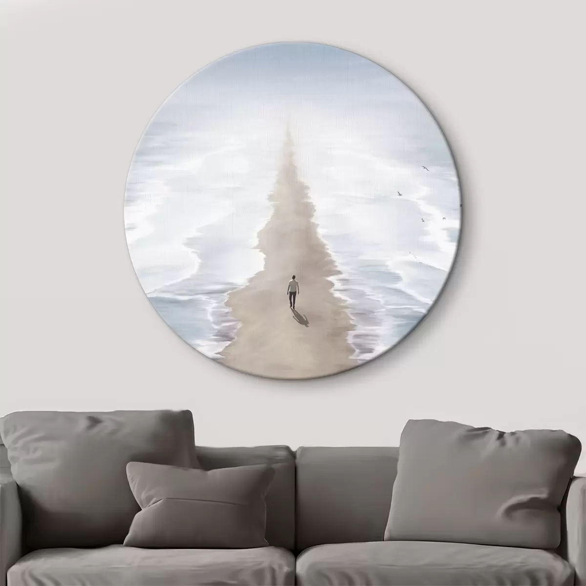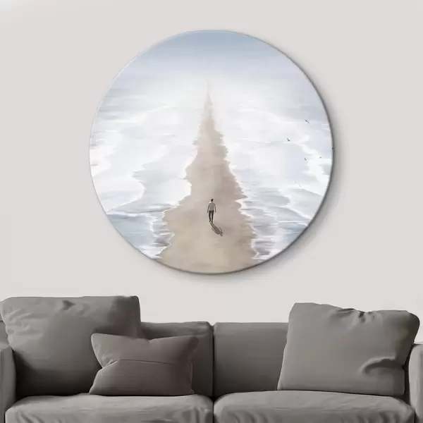 Ronde schilderijen Een persoon die op het strand loopt r37783
