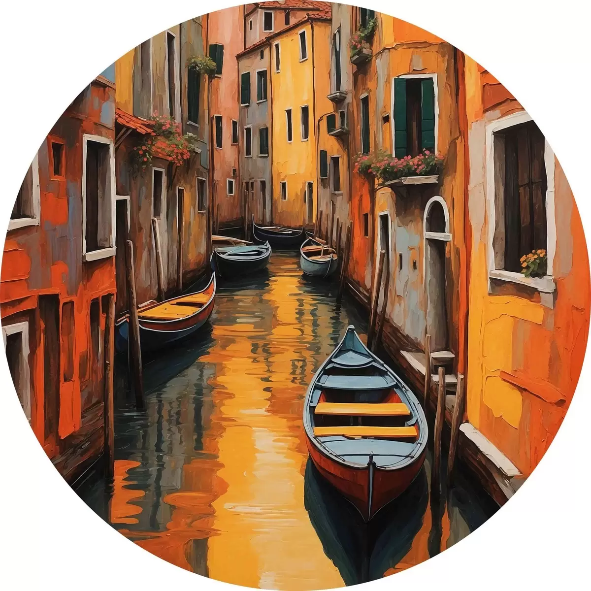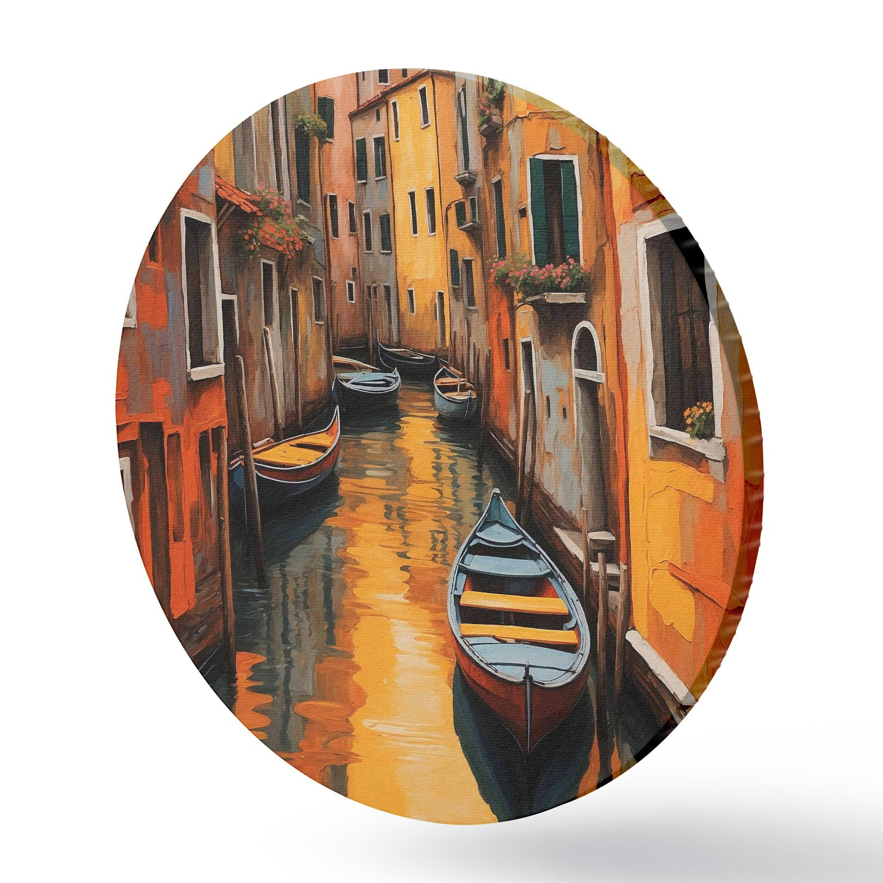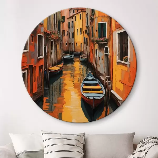 Ronde schilderijen Boot in de gracht tussen gebouwen r37790