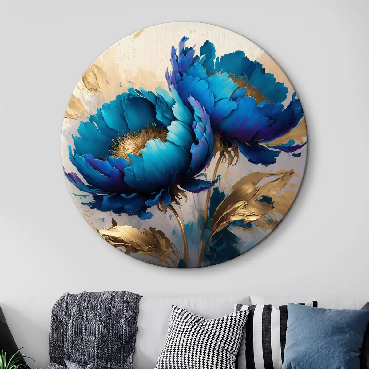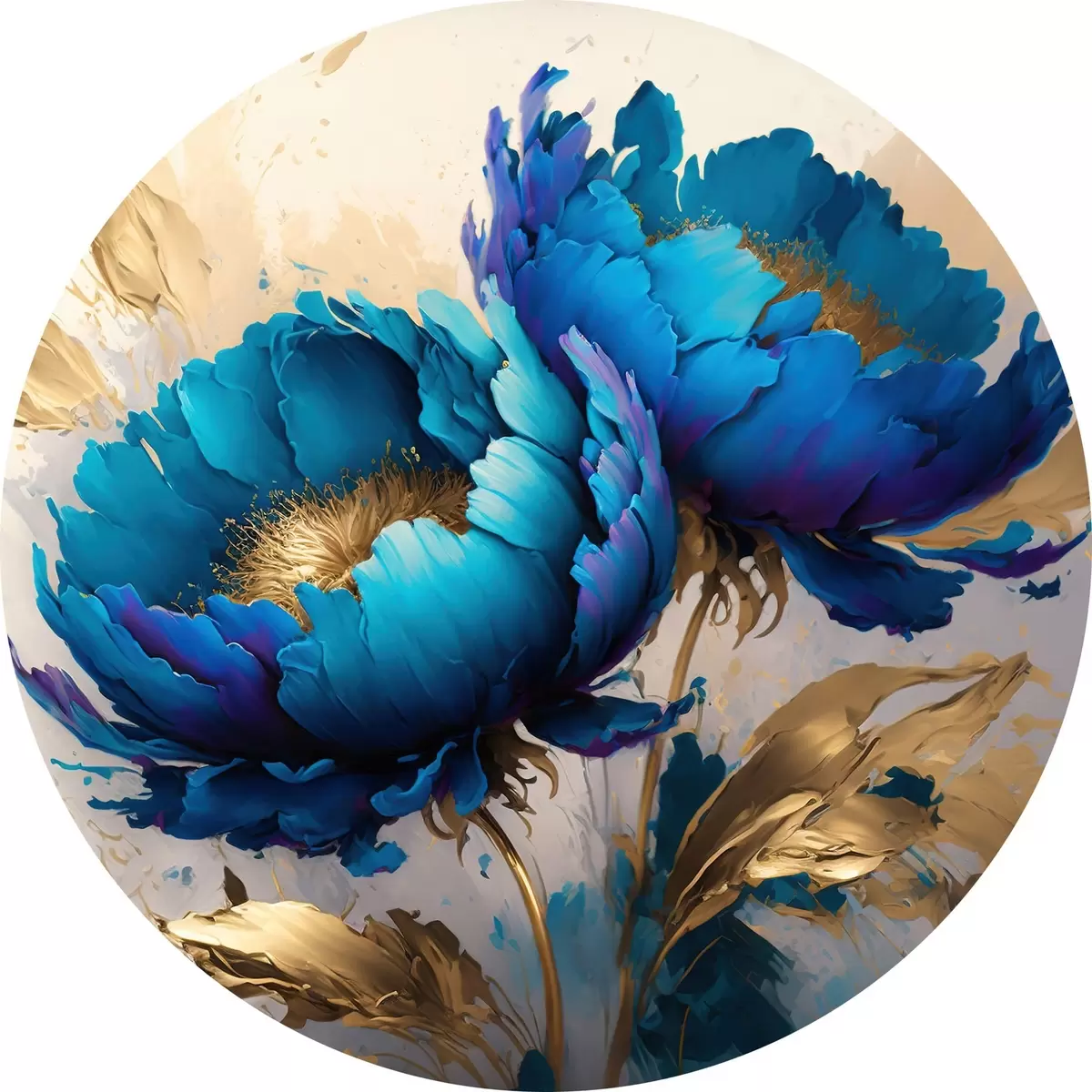 Ronde schilderijen Blauwe pioenen r37843