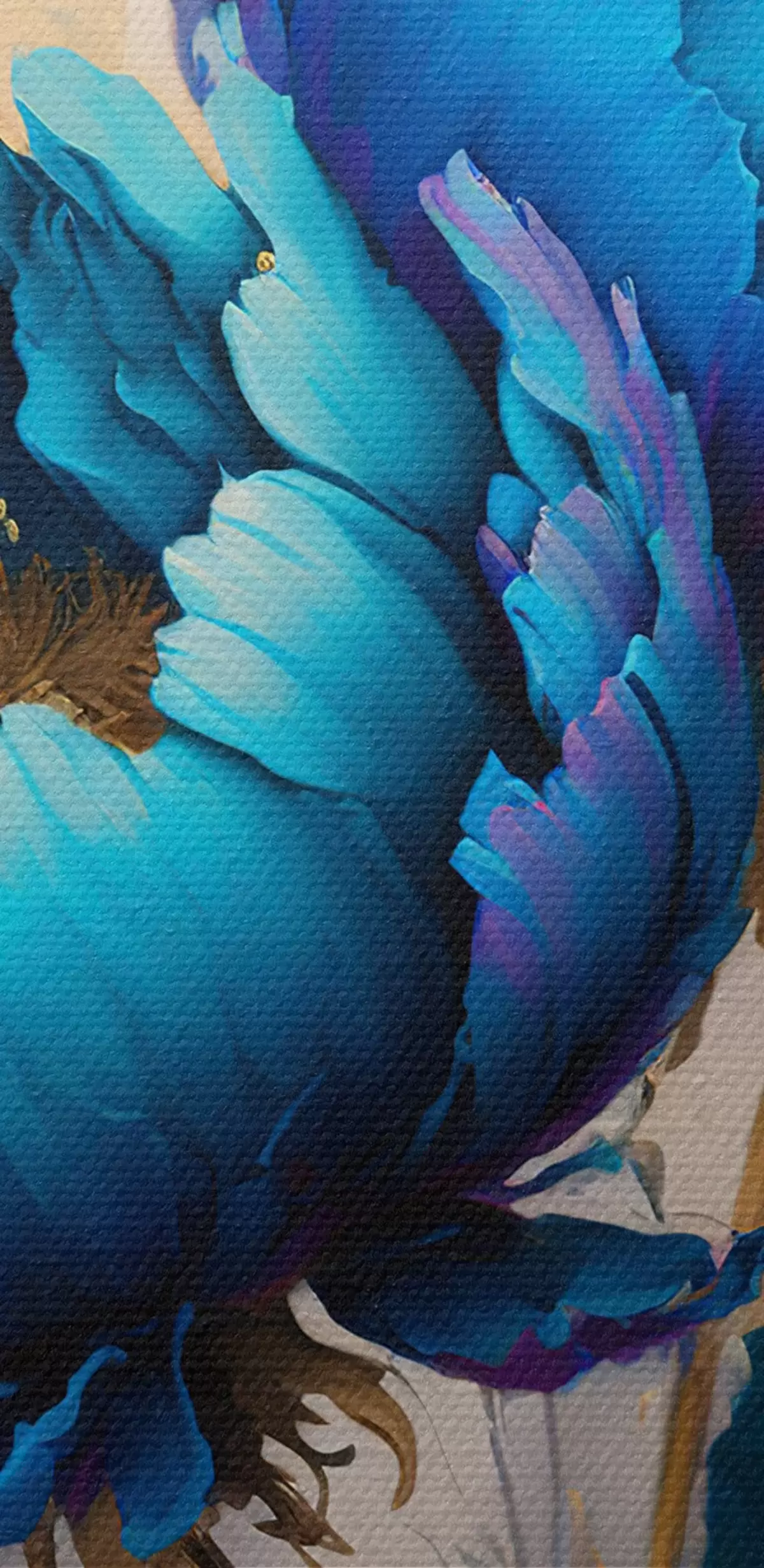 Het schilderij kan direct na ontvangst worden opgehangen. Het schilderij wordt opgespannen op een 2 cm breed houten spieraam.