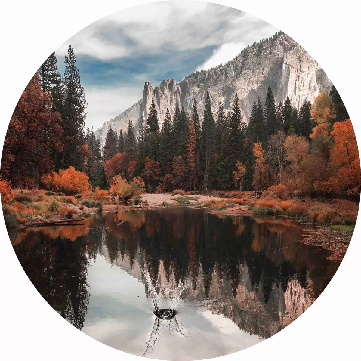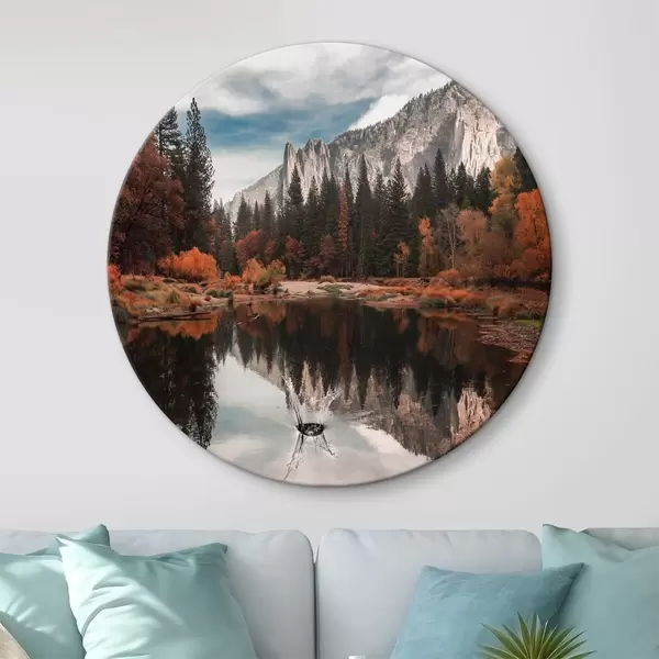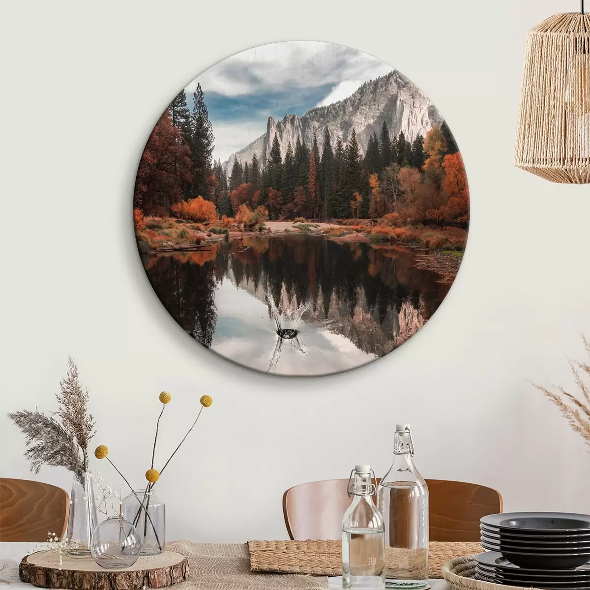 Ronde schilderijen Herfstreflecties op een stil meer r37852
