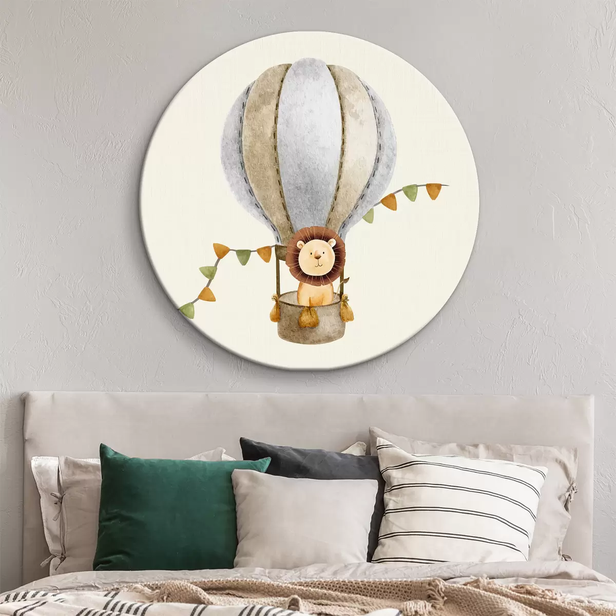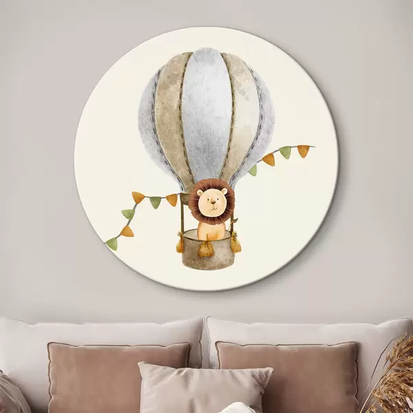 Ronde schilderijen Een leeuwenwelpje in een ballon r37914