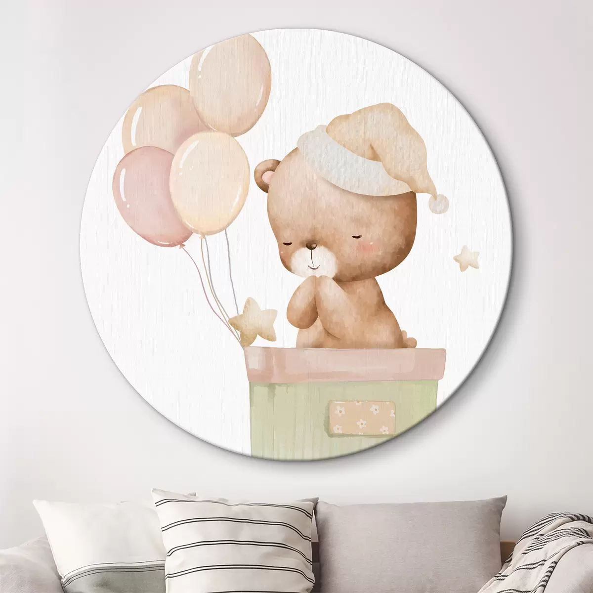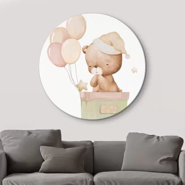 Ronde schilderijen Slaperig berenjong met ballonnen r37918
