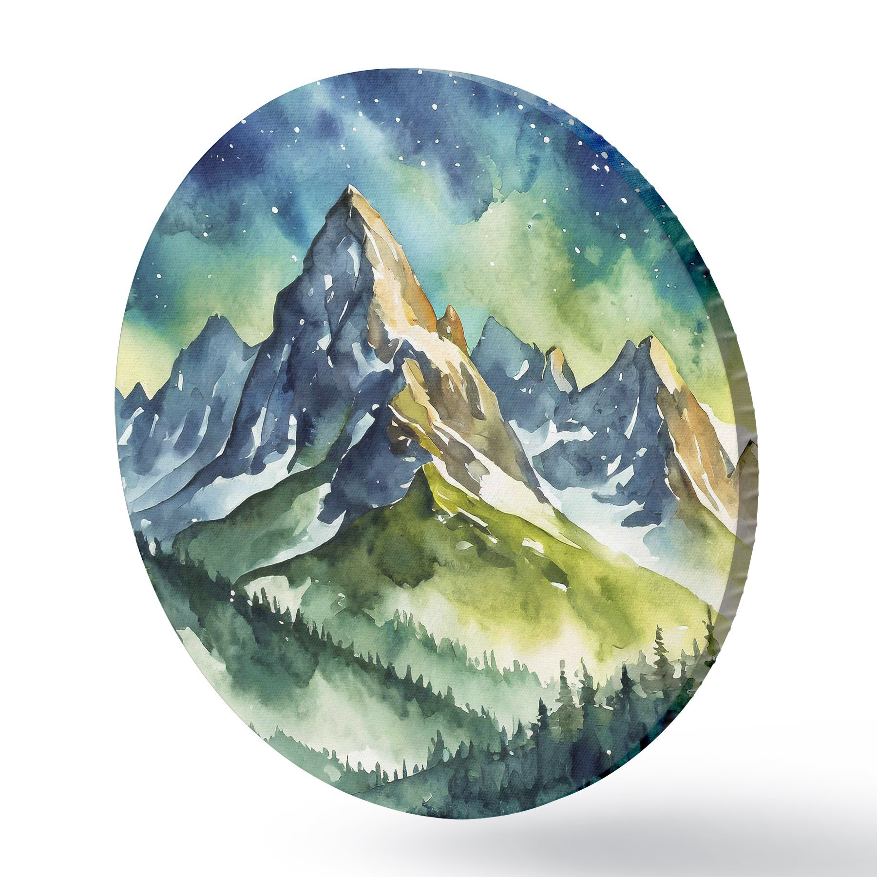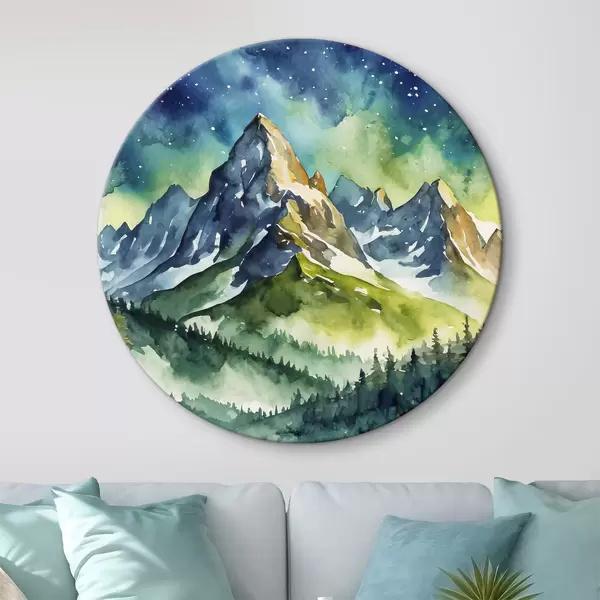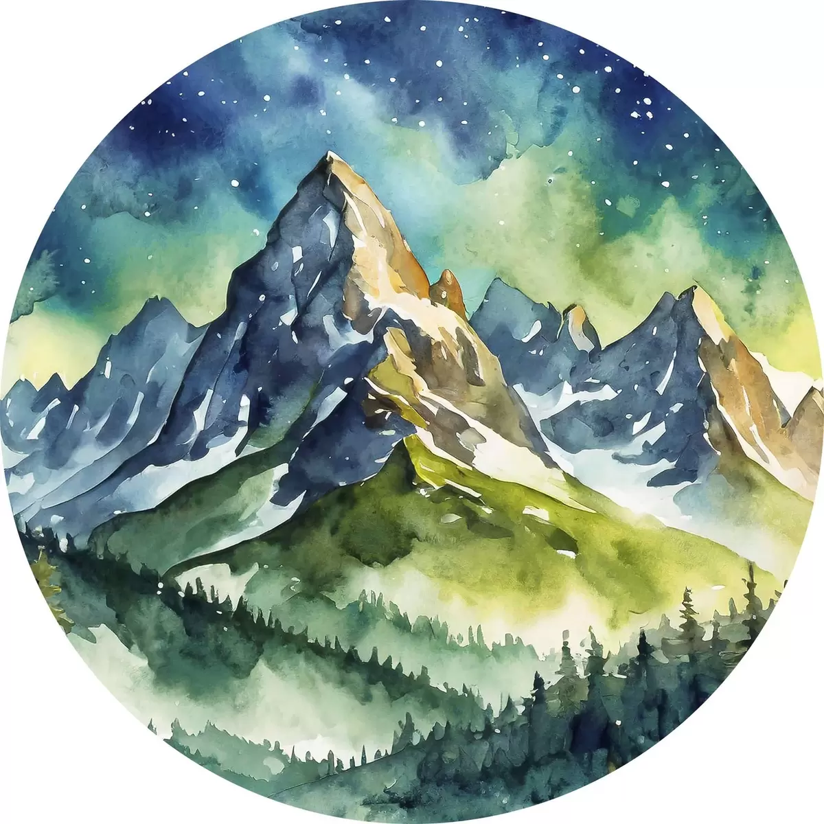 Ronde schilderijen Majestueuze bergen onder de sterrenhemel r37944
