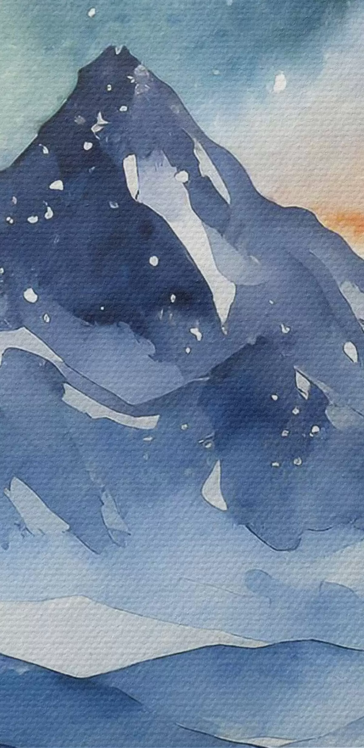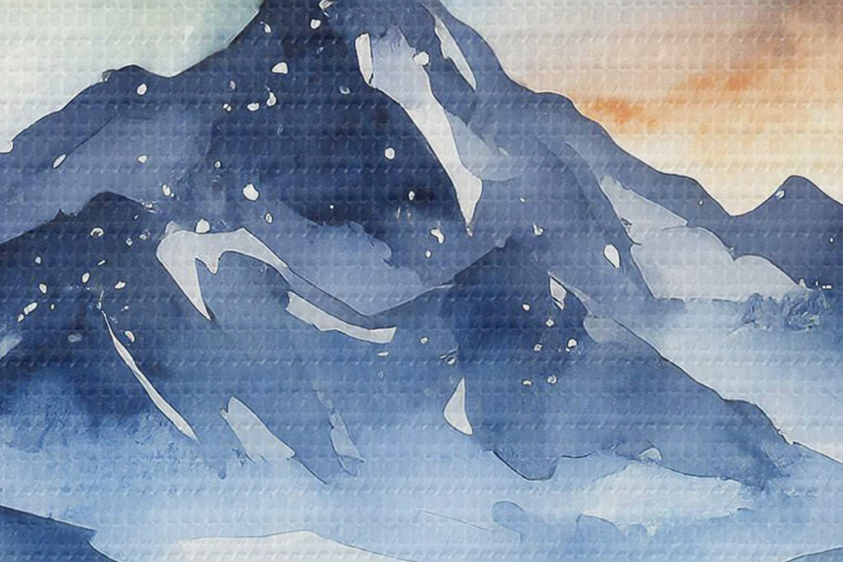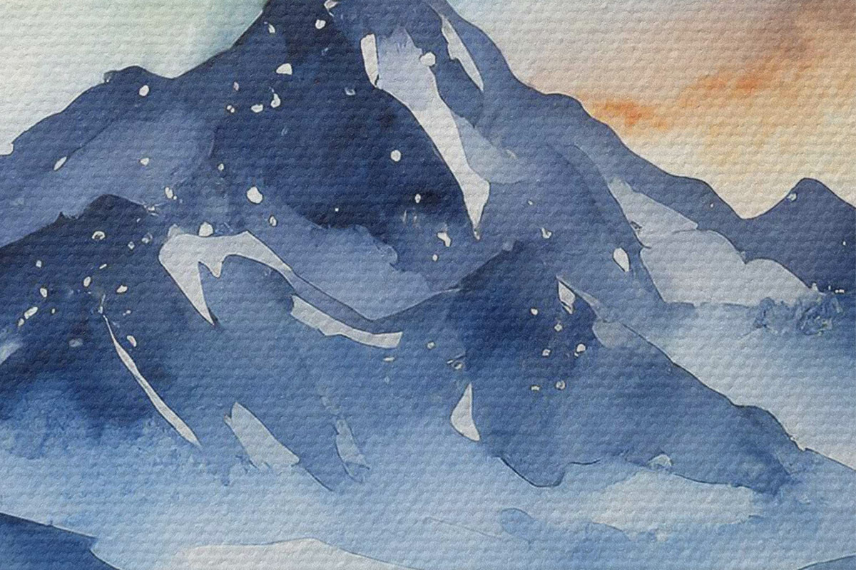 Afbeelding Aquarel berglandschap, bos, sterrenhemel, zonsondergang kleuren Nr r37946