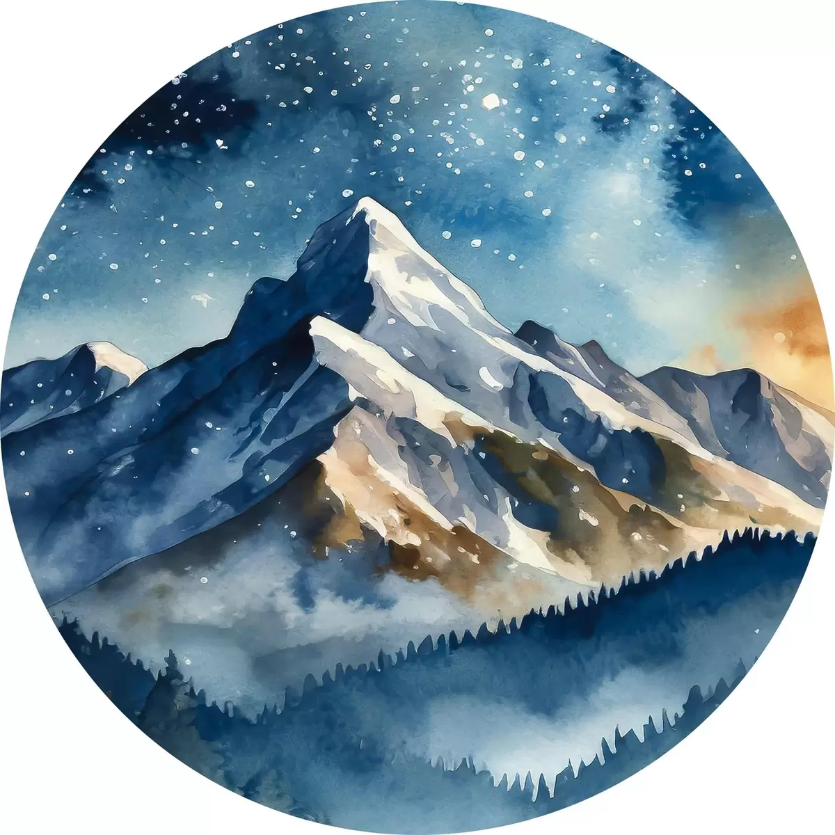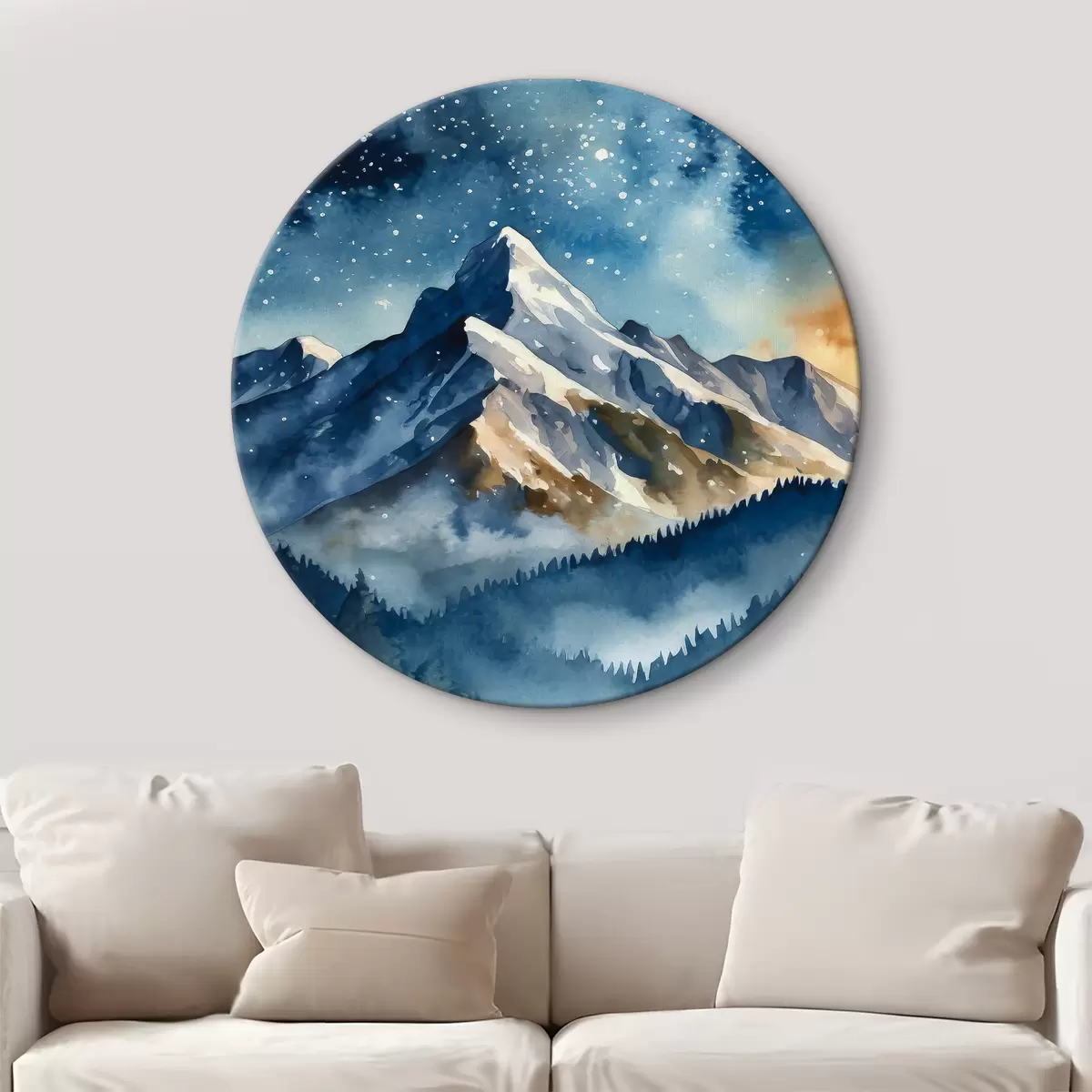 Ronde schilderijen Majestueuze bergen onder de sterrenhemel r37947