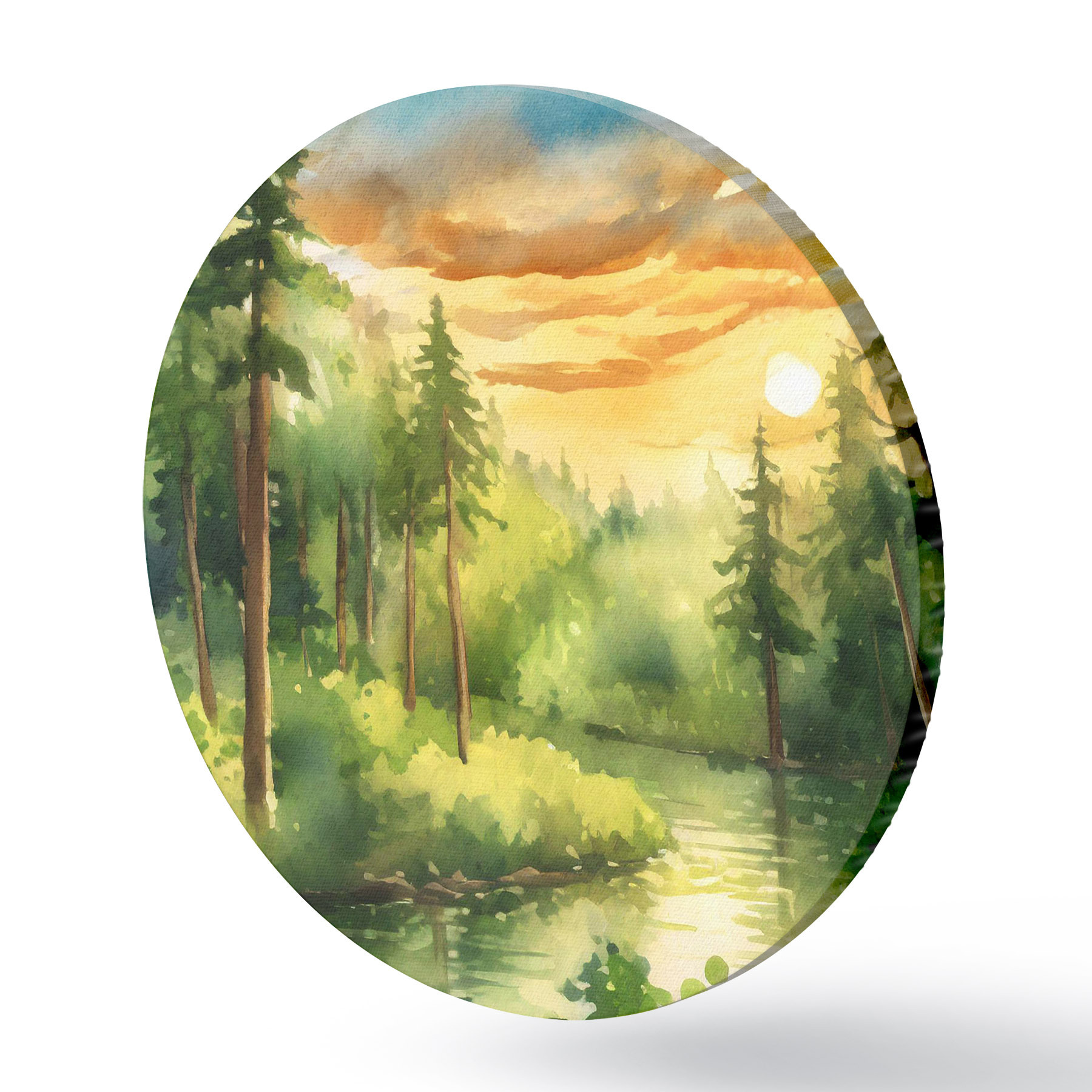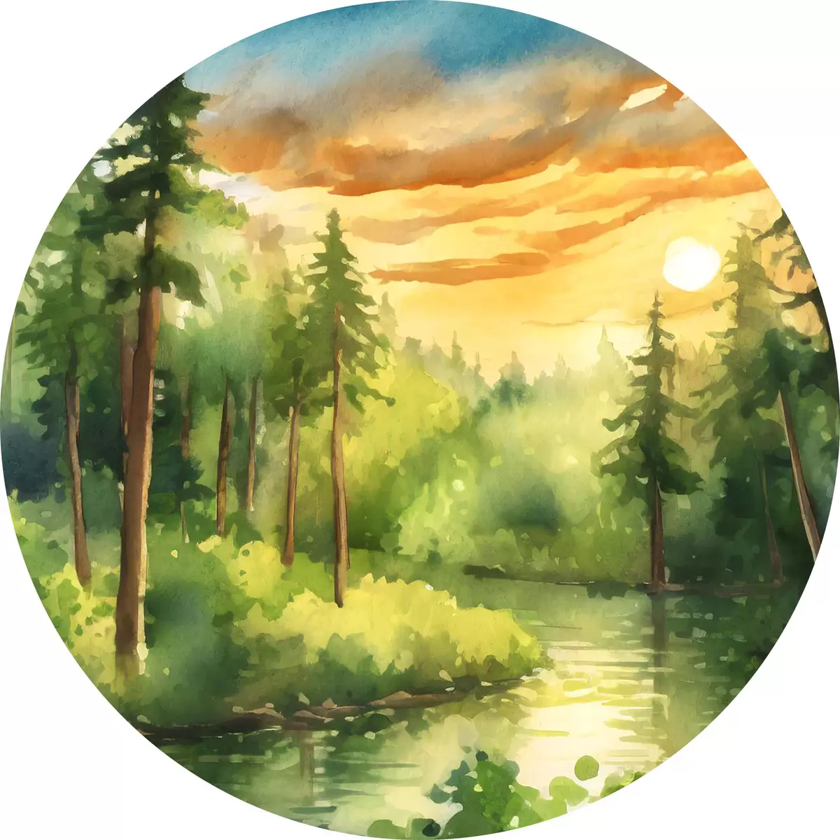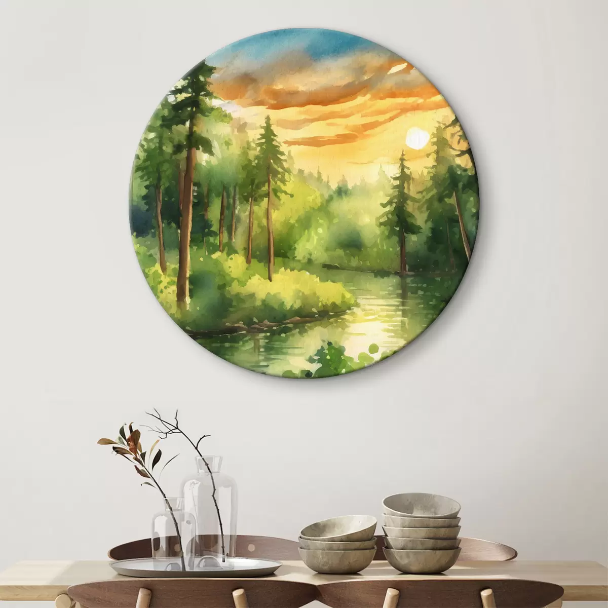 Ronde schilderijen Vredig bos bij een rustige rivier r37950