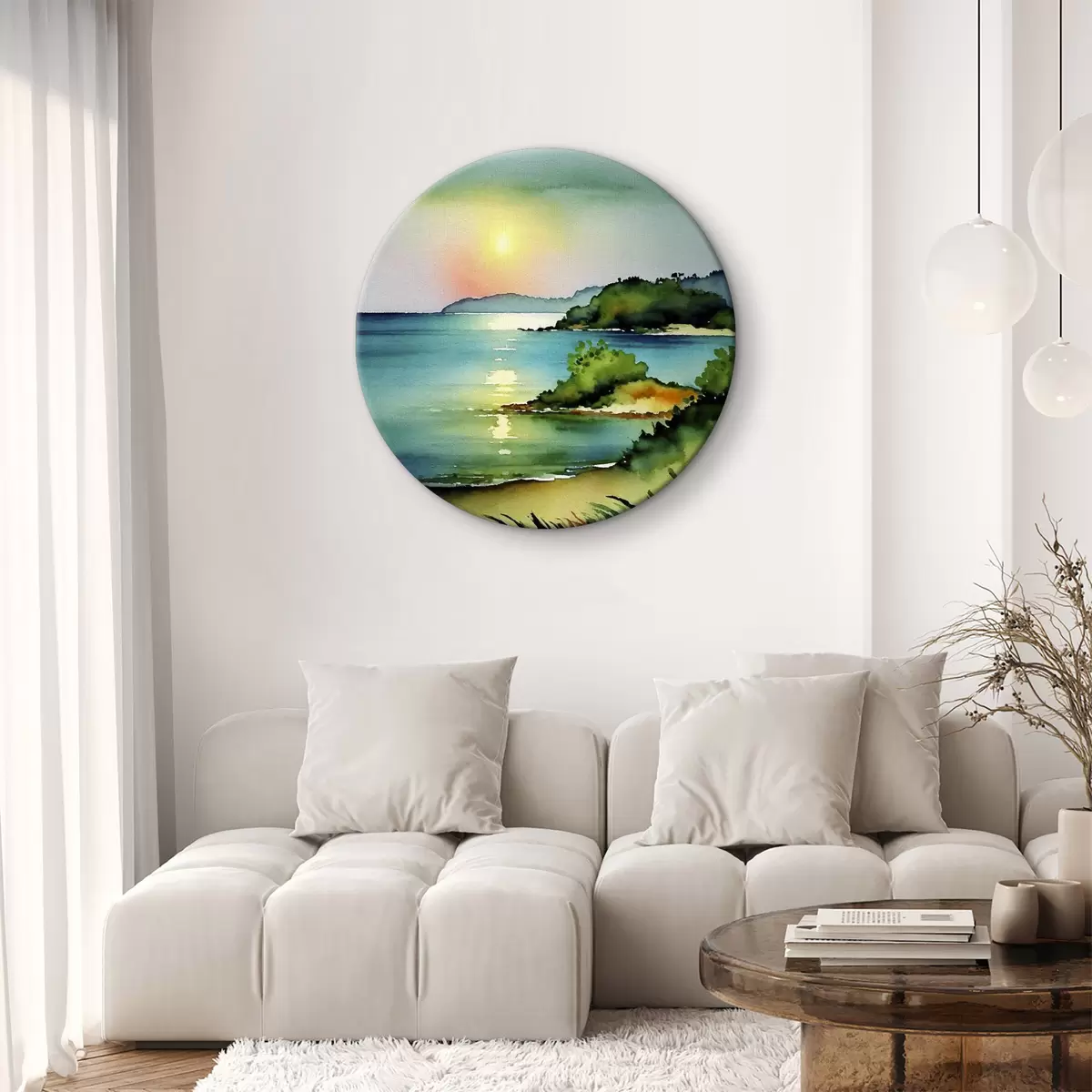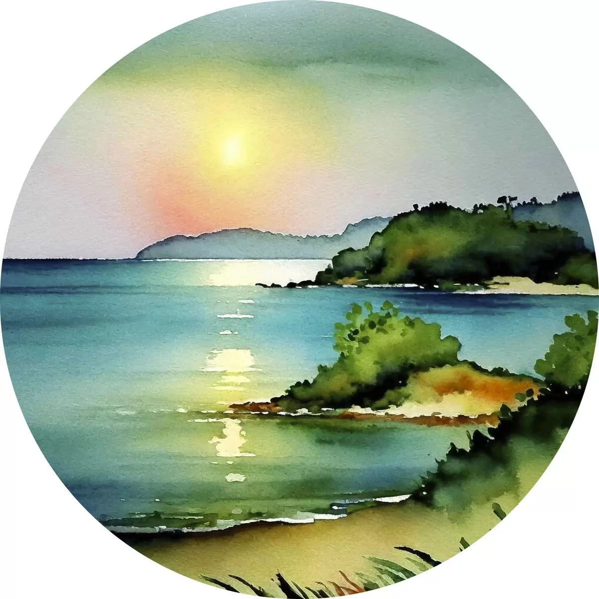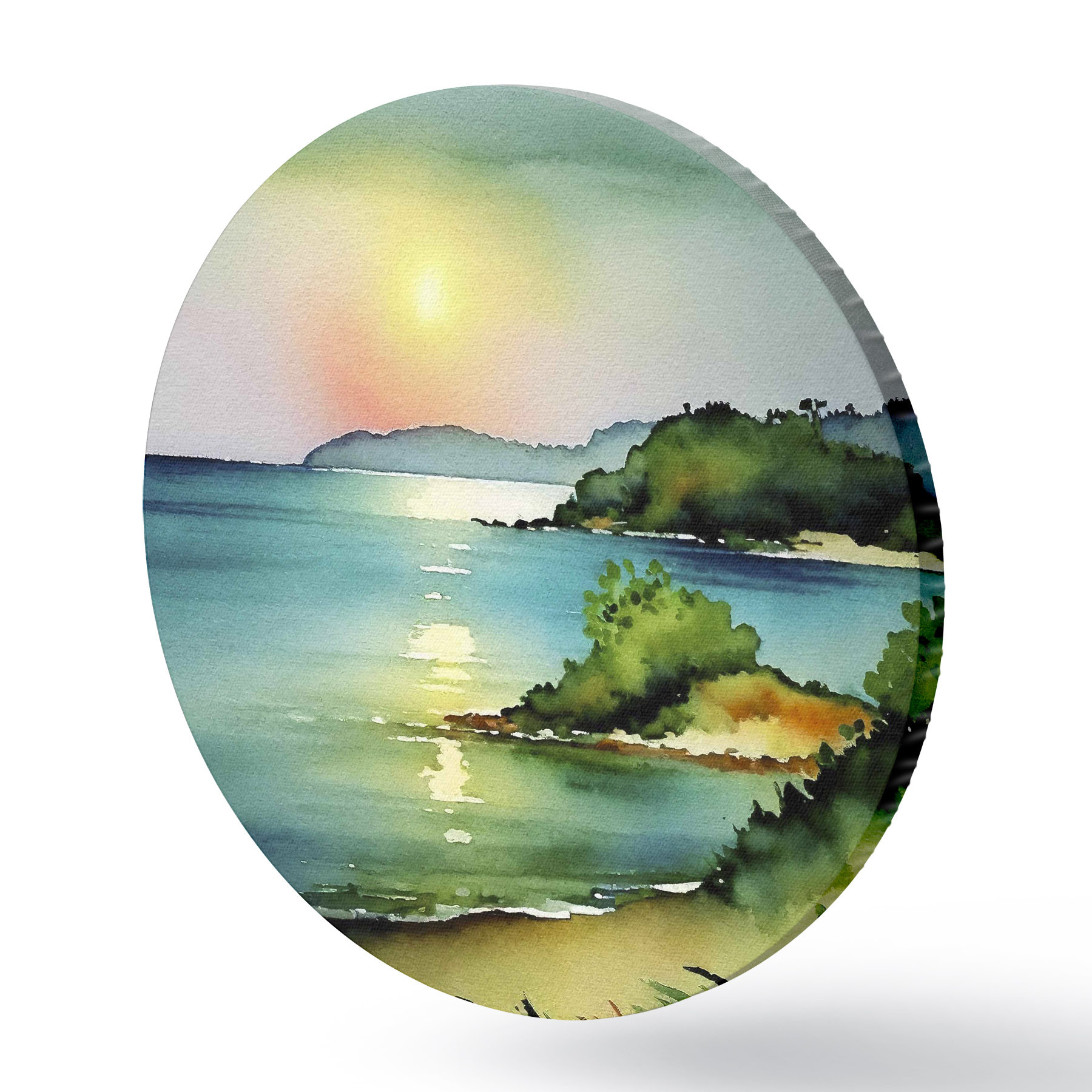 Ronde schilderijen Kalm water en glooiende heuvels r37956