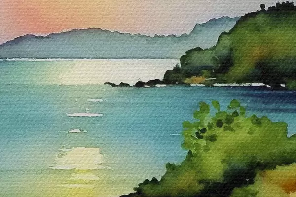 Afbeelding Kalm water en glooiende heuvels Nr r37956