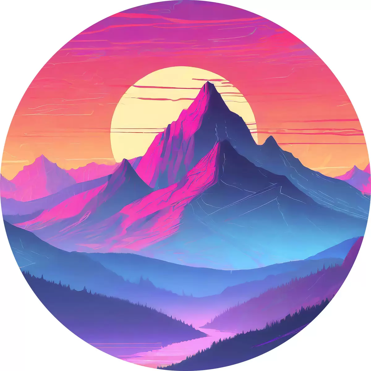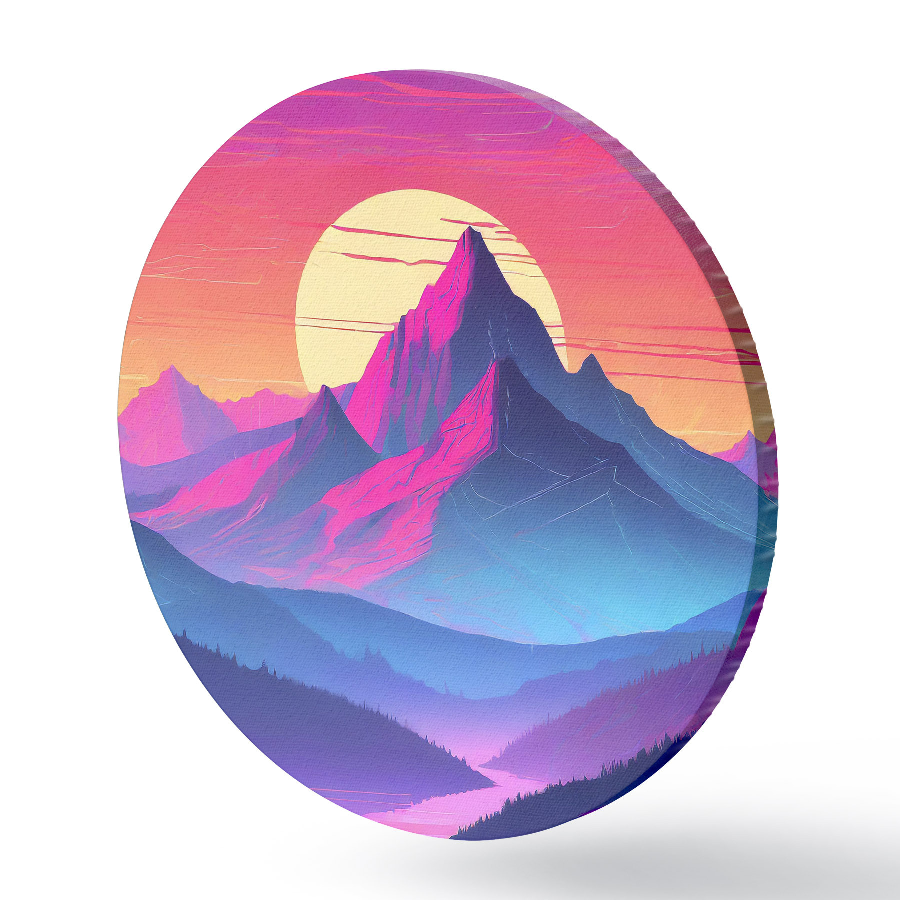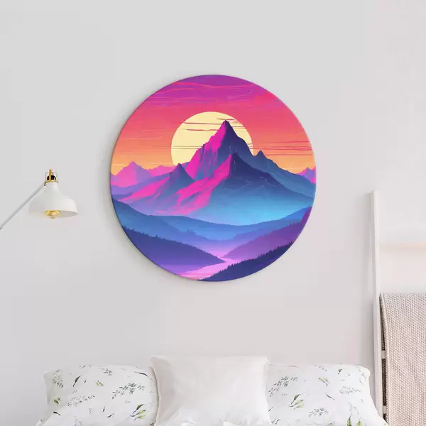 Ronde schilderijen Vredige bergen onder een kleurrijke hemel r38003