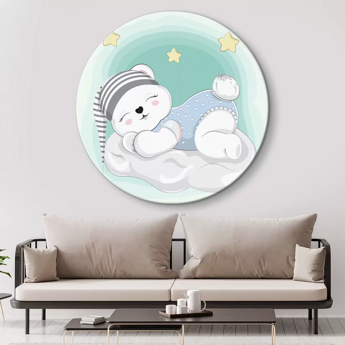 Ronde schilderijen Een magische beer droomt op een wolk r38040