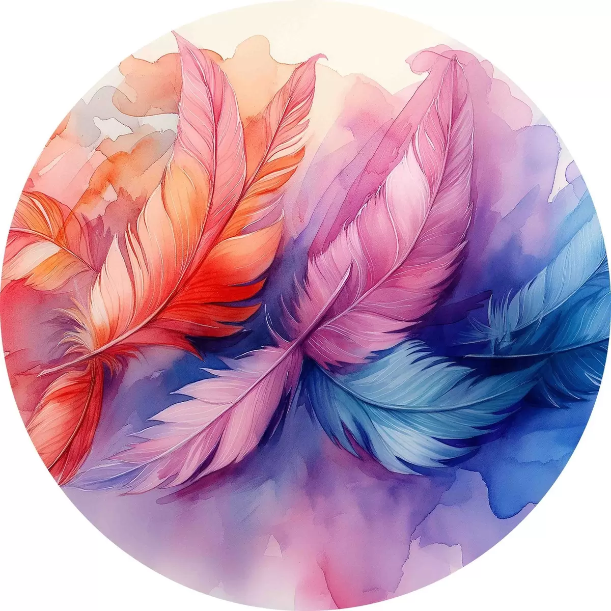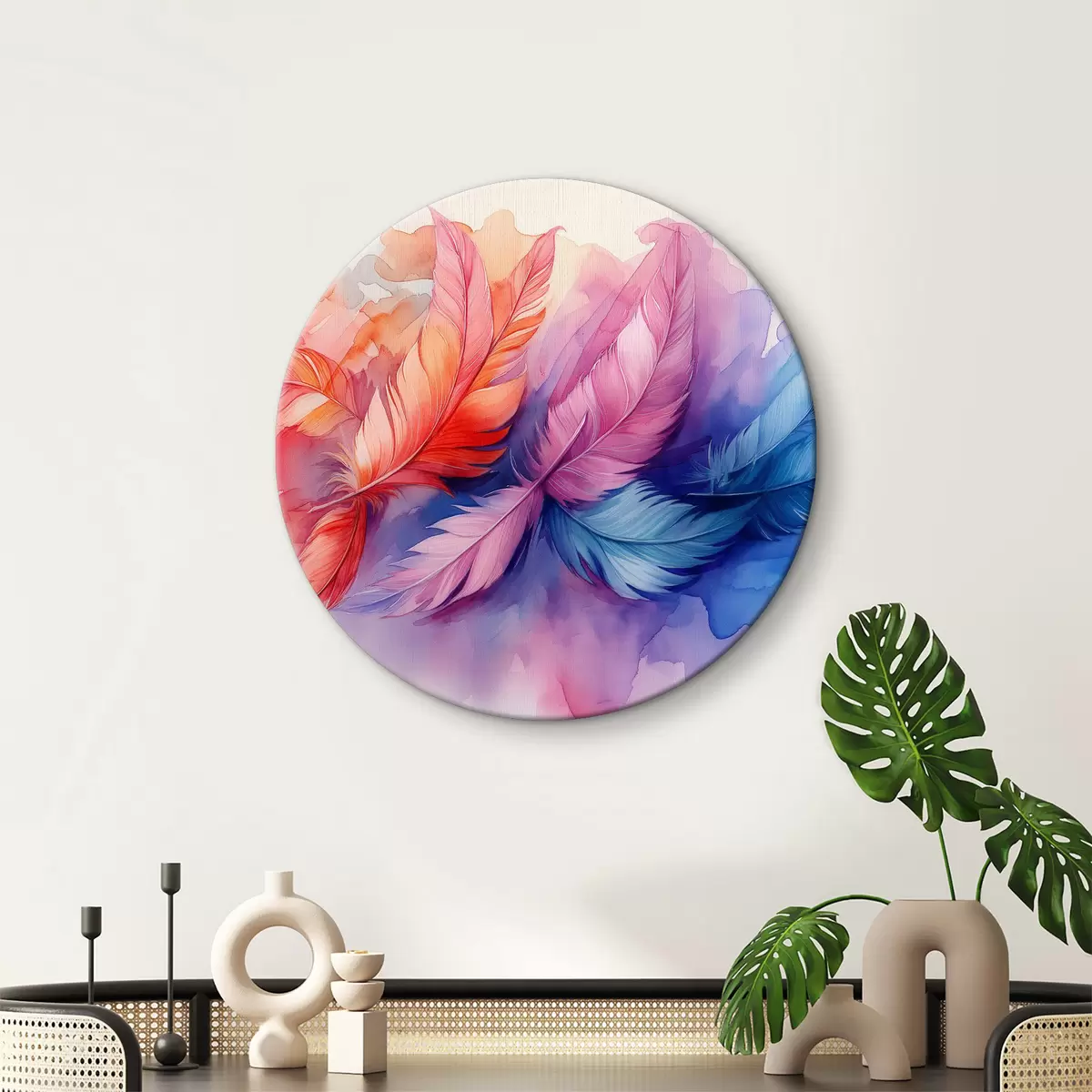 Ronde schilderijen Kleurrijke veren op een witte achtergrond r38093