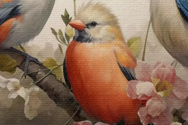Afbeelding Een groep vogels op een tak met bloemen Nr r38103