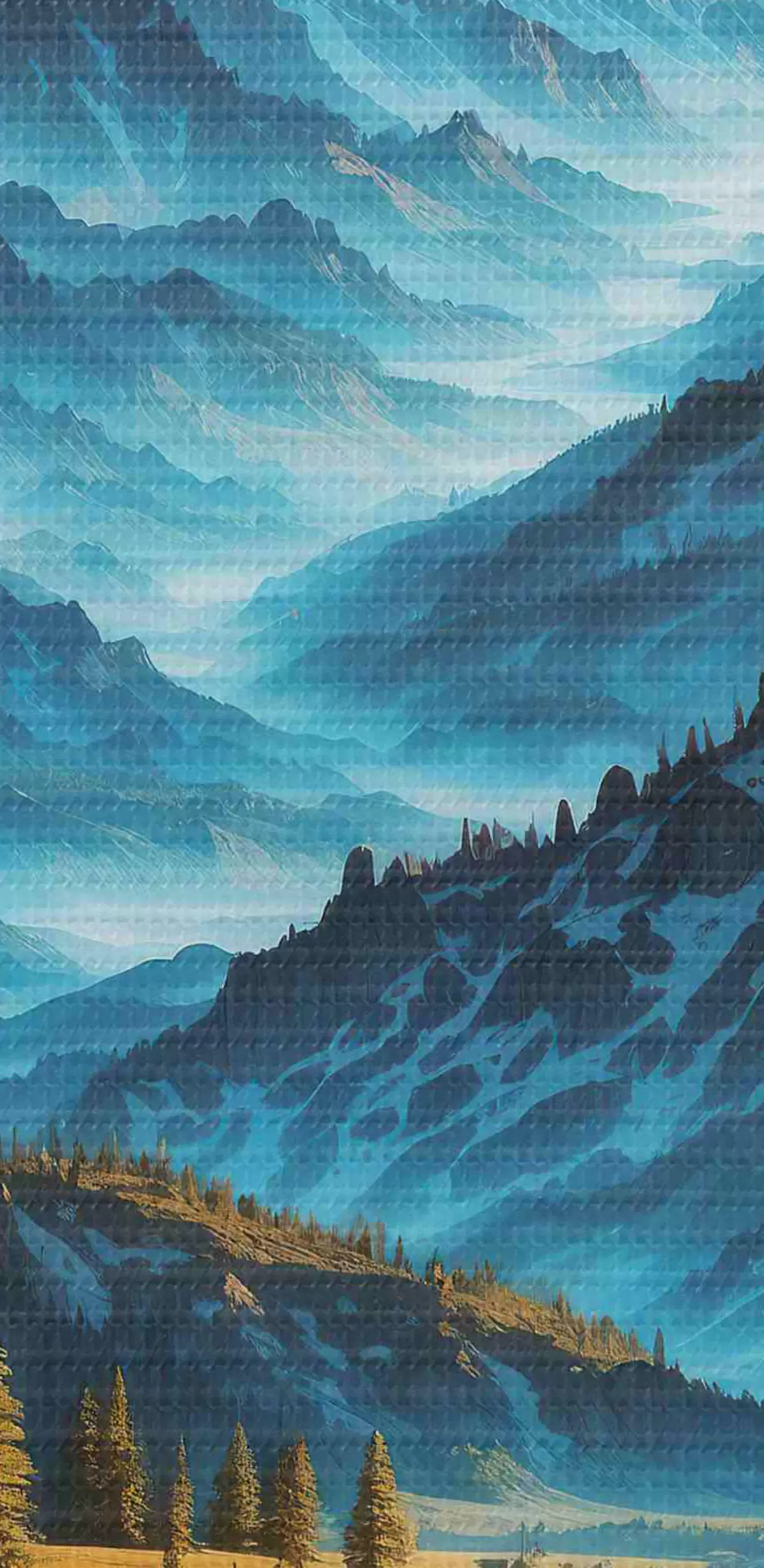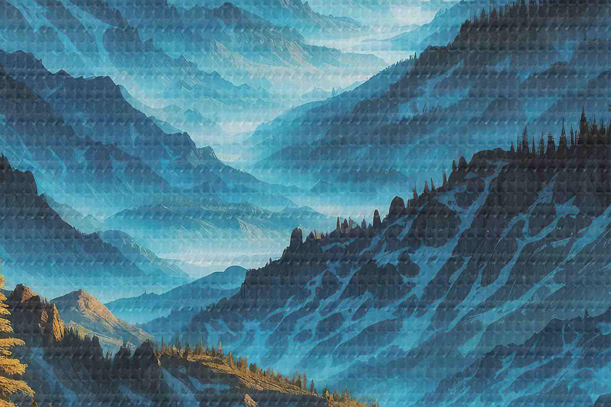 Afbeelding Bergketen met bomen en rivier Nr r38134