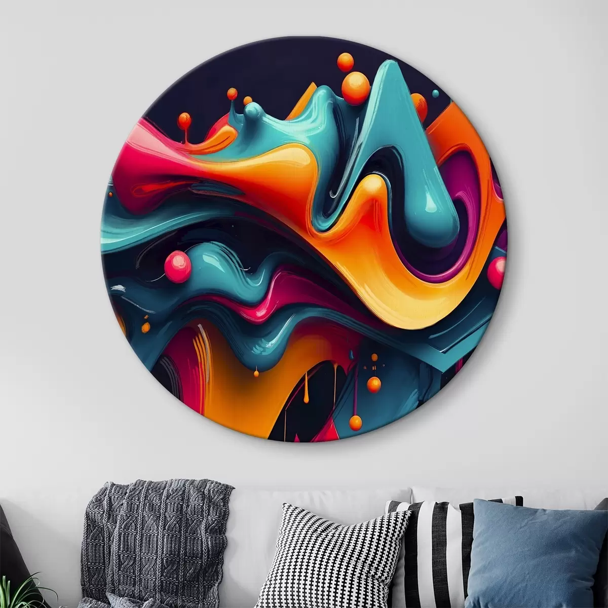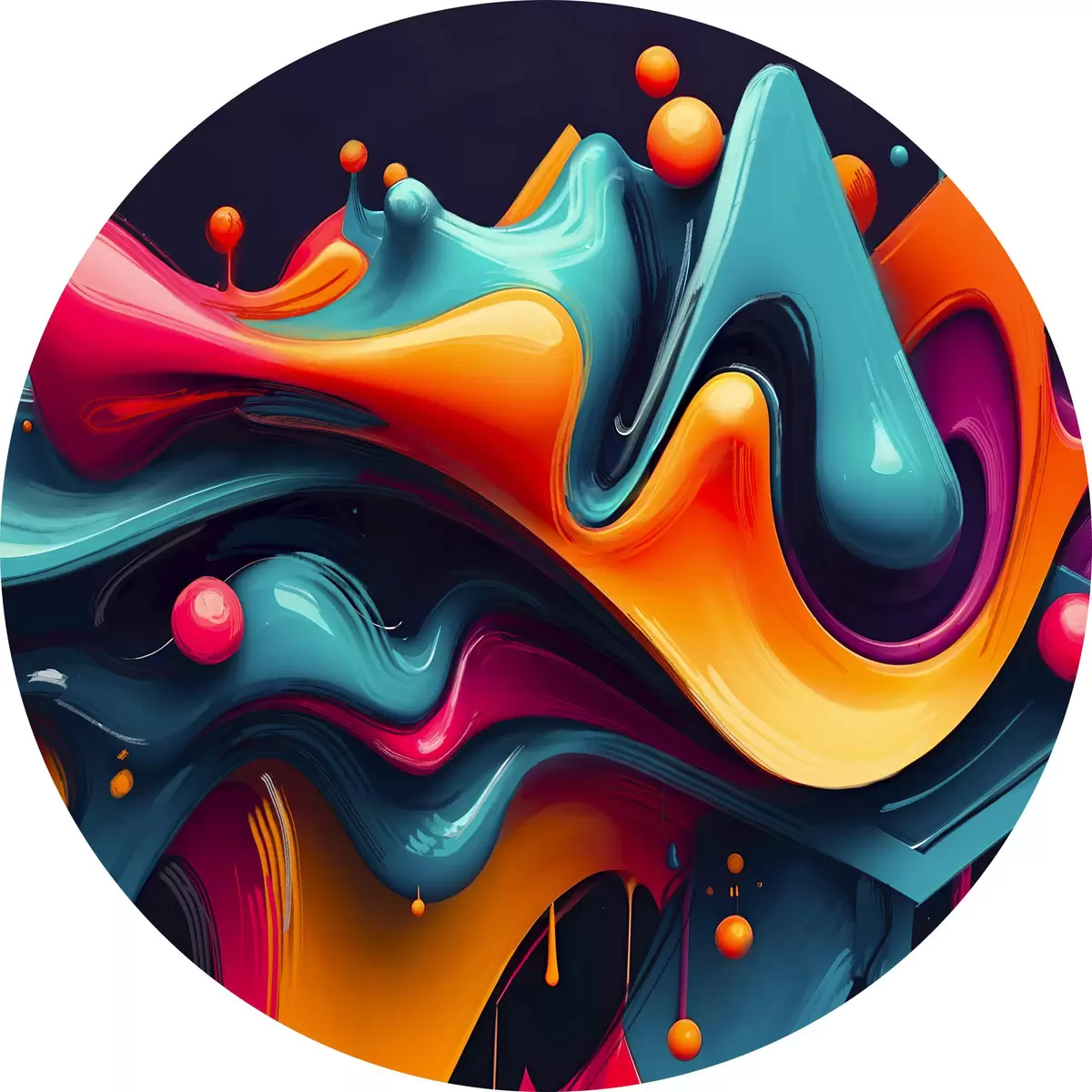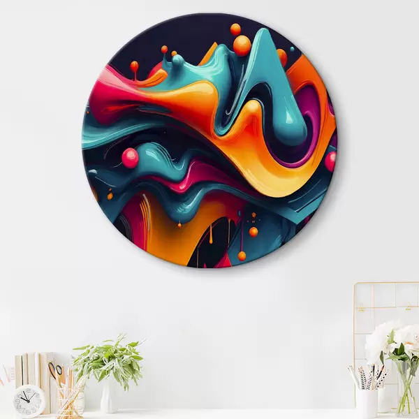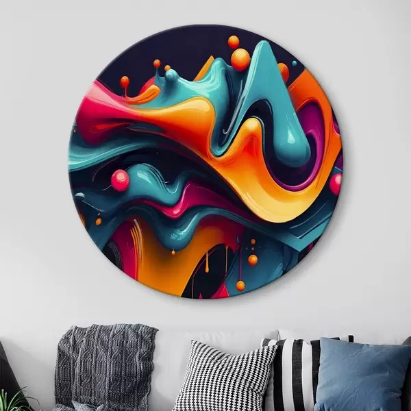 Ronde schilderijen Kleurrijke abstracte vloeiende vormen met levendige tinten, dynamische en surrealistische compositie r38163