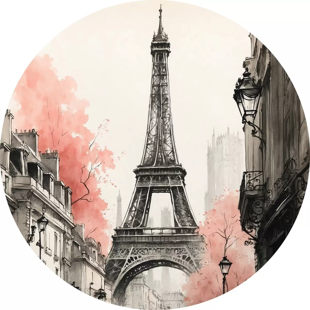 Ronde schilderijen Parijs van de vorige eeuw in zwart-witte kleuren r38178