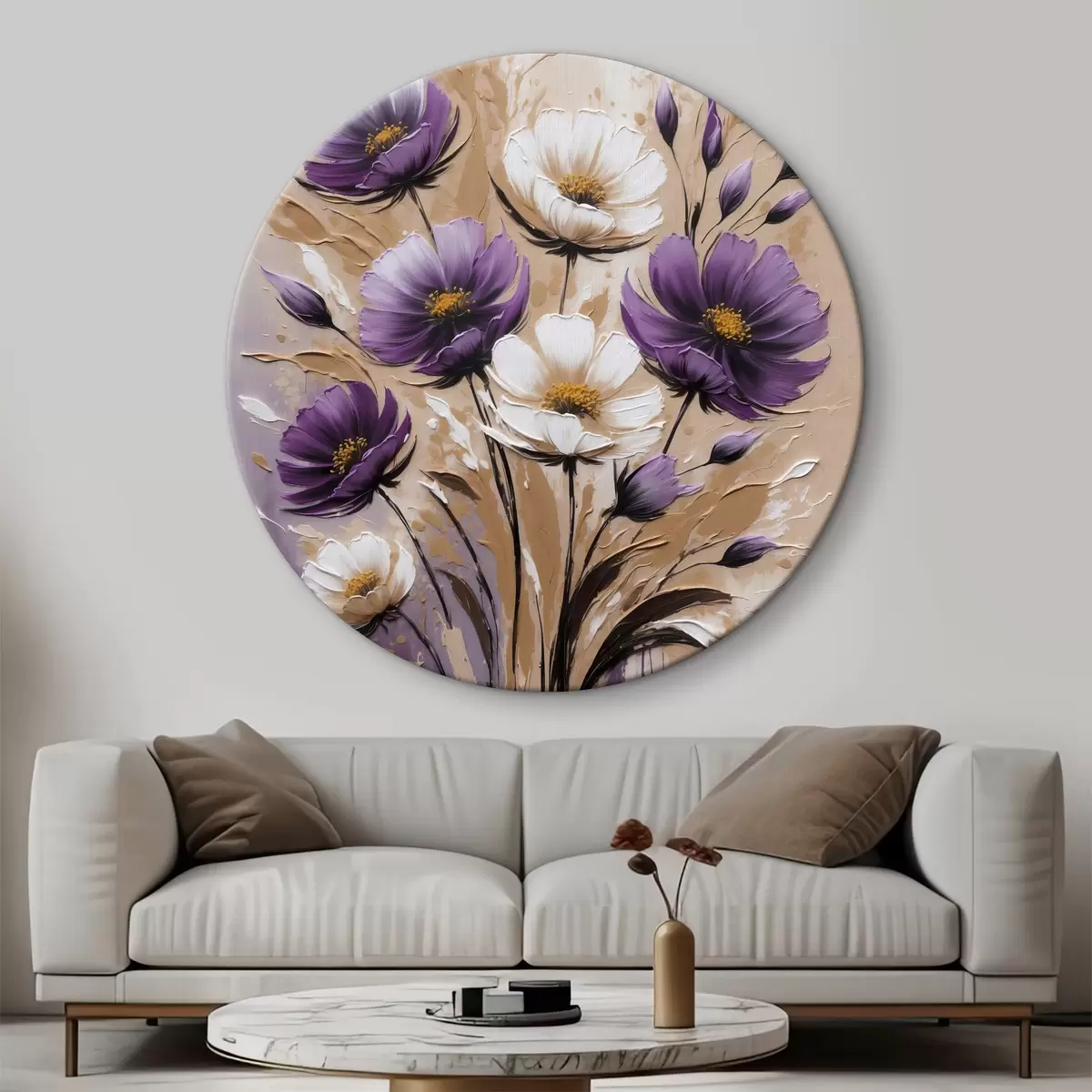 Ronde schilderijen Boeket van paarse en witte bloemen r38225