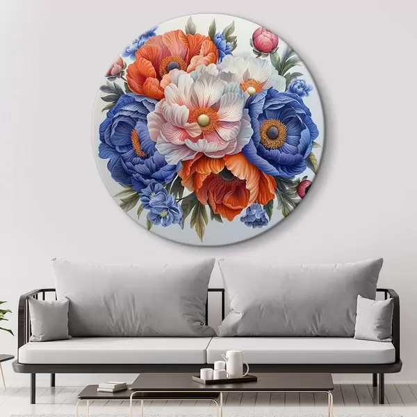 Ronde schilderijen Afbeelding van bloemen op een witte achtergrond r38244