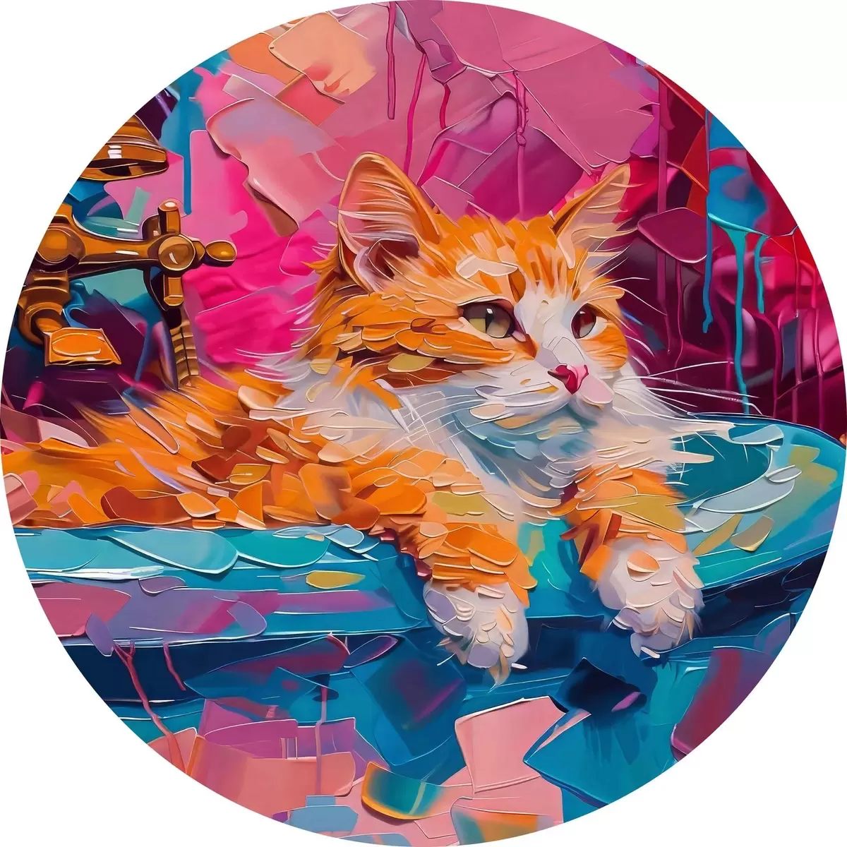 Ronde schilderijen Kat ligt in de gootsteen r38255