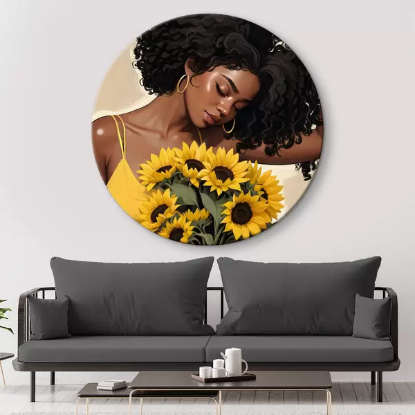 Ronde schilderijen Schoonheid in de elegantie van een zonnebloem r38287