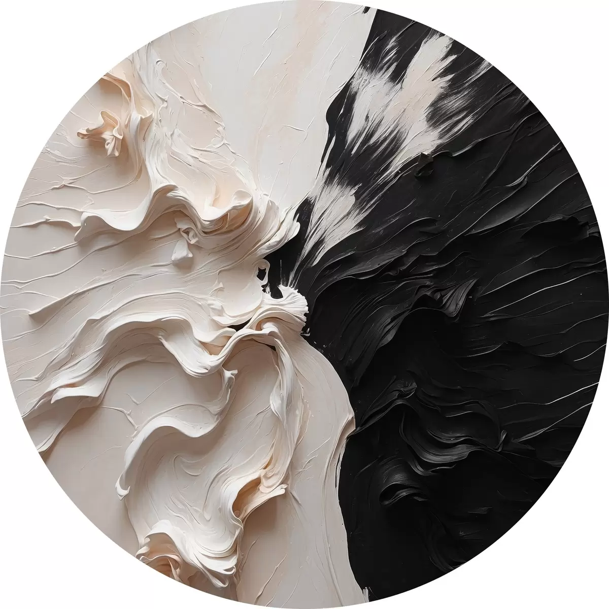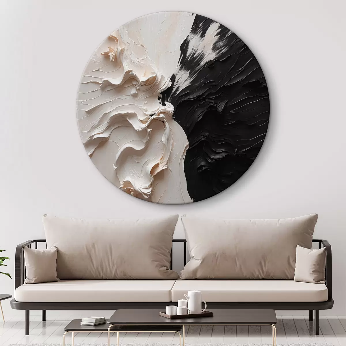Ronde schilderijen Abstract olieverfschilderij in witte en zwarte kleuren r38300