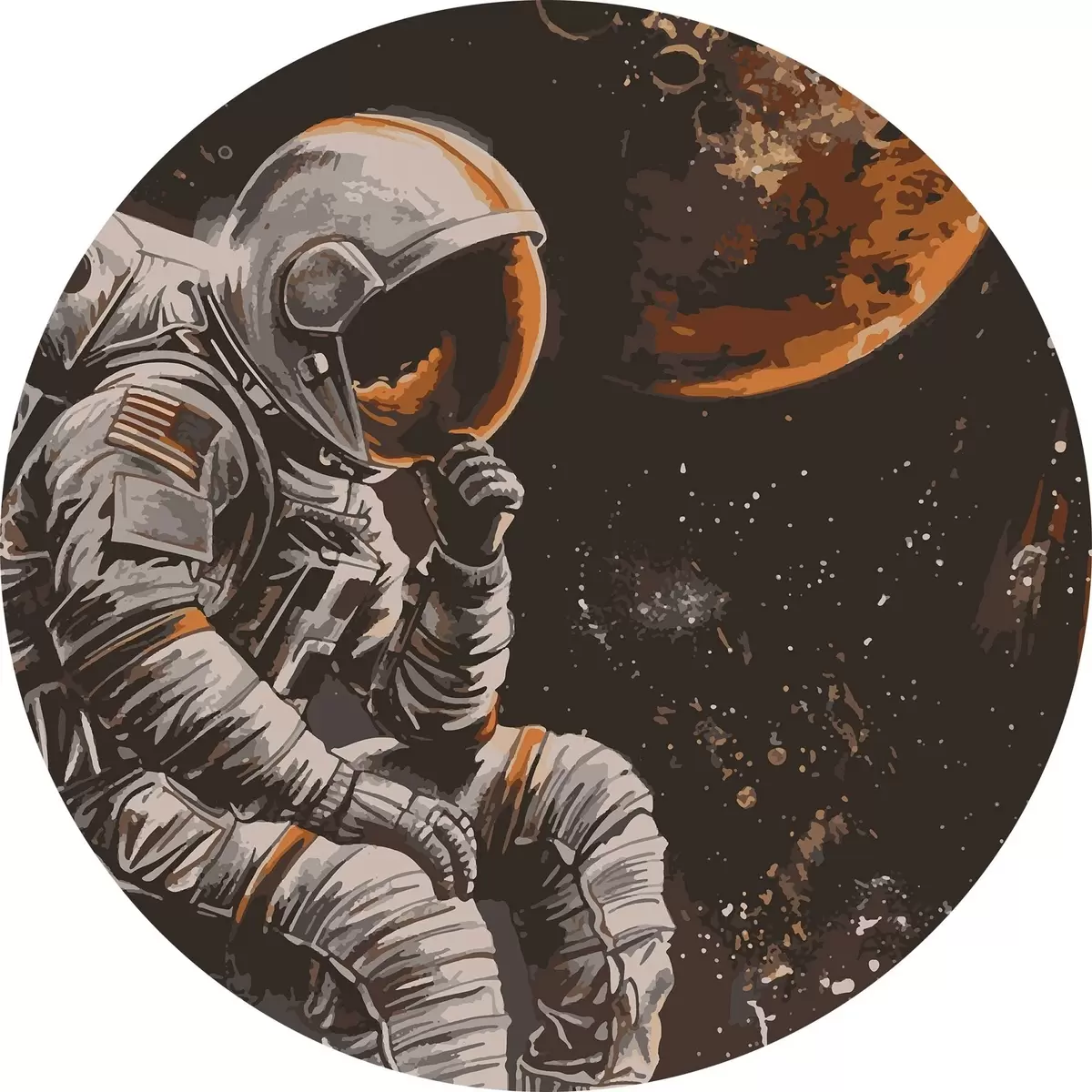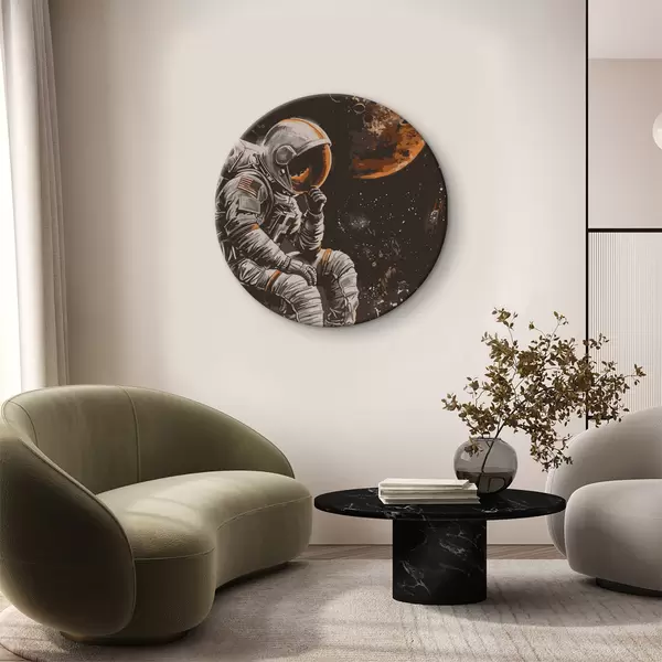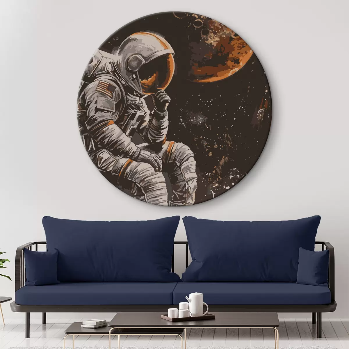 Ronde schilderijen Astronaut zittend op een rots r38316