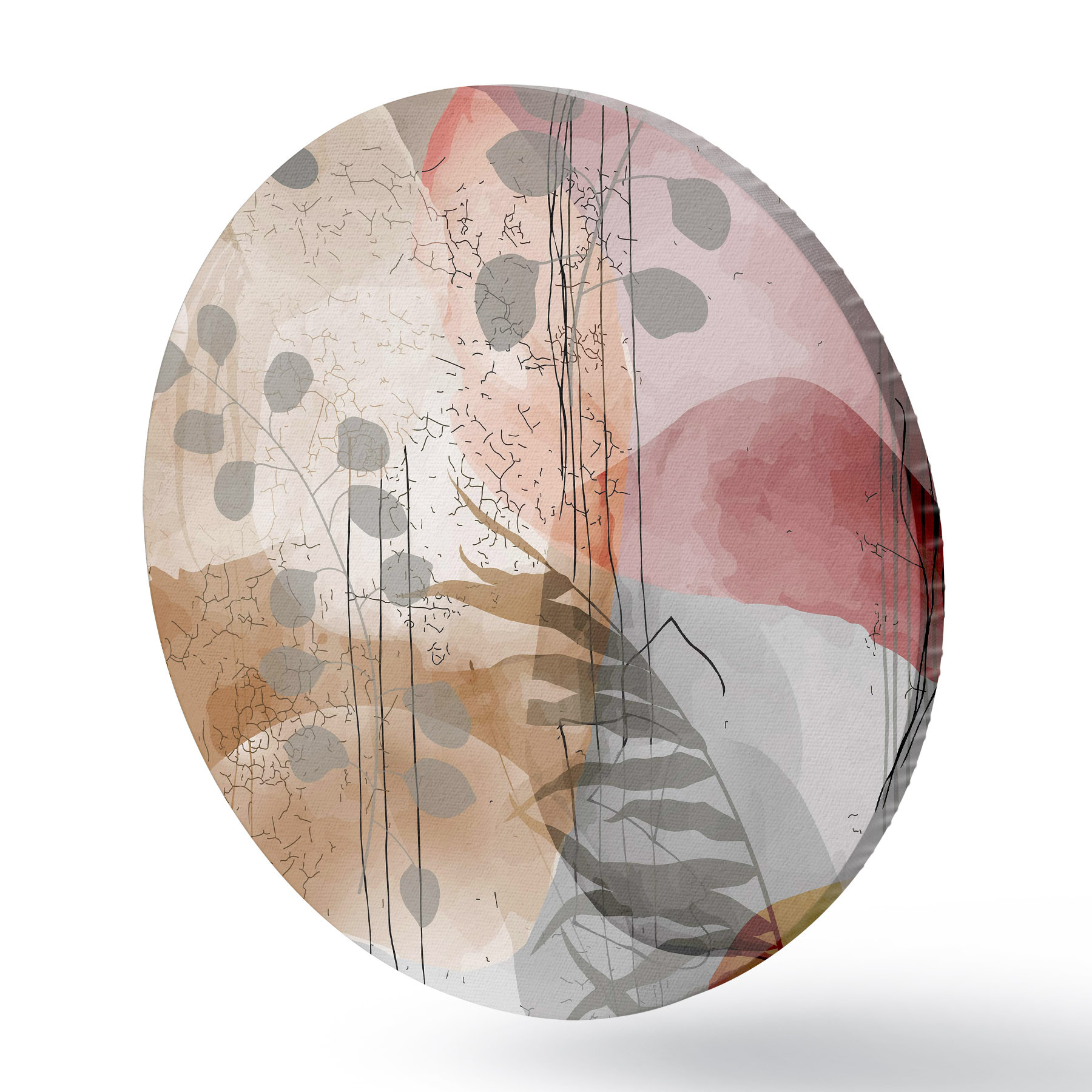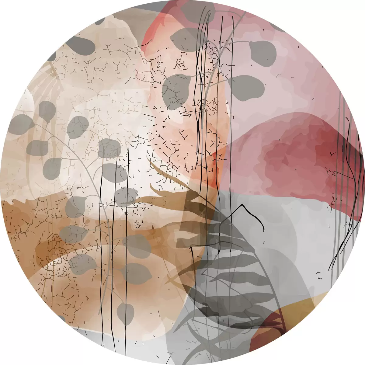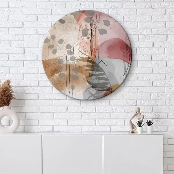 Ronde schilderijen Een schilderij met planten en bloemen r38329