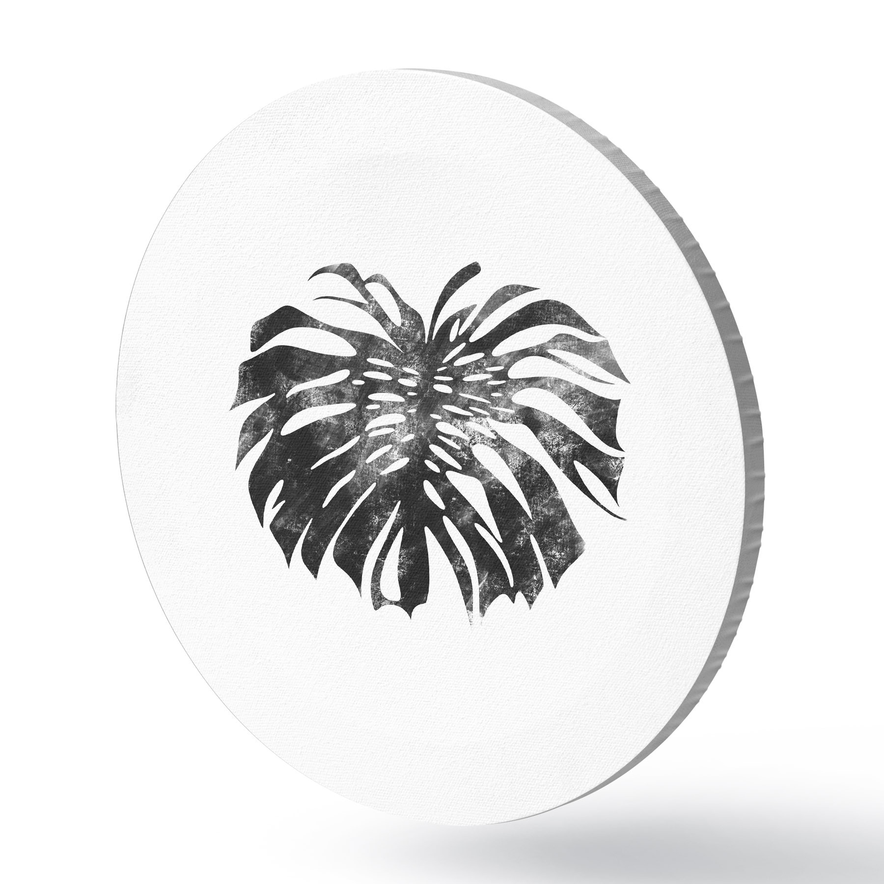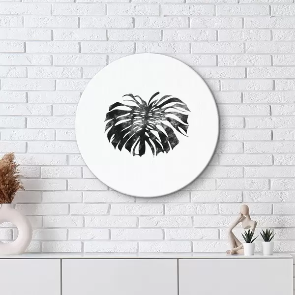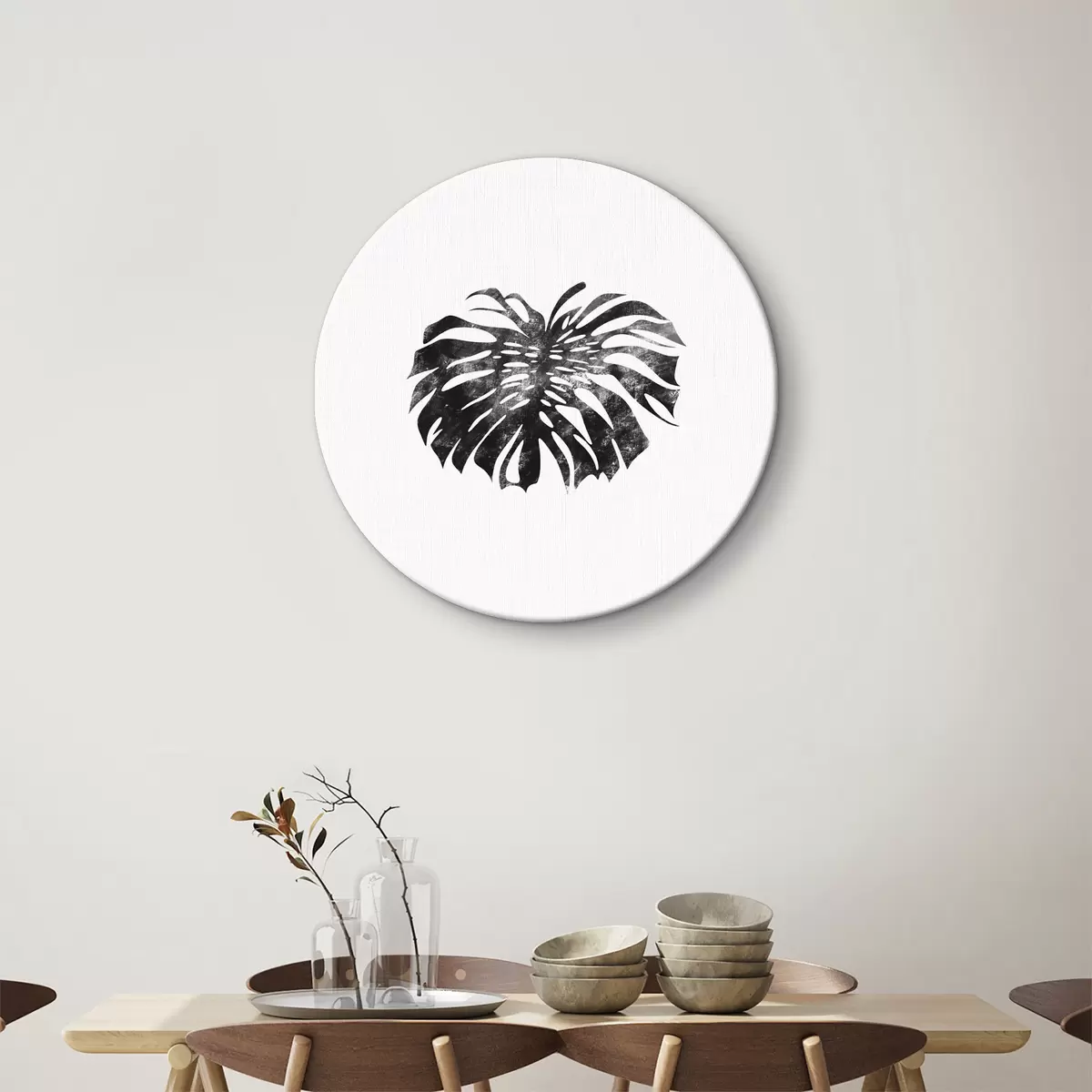 Ronde schilderijen Zwart-wit afbeelding van een blad r38348