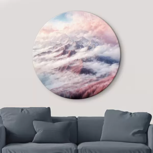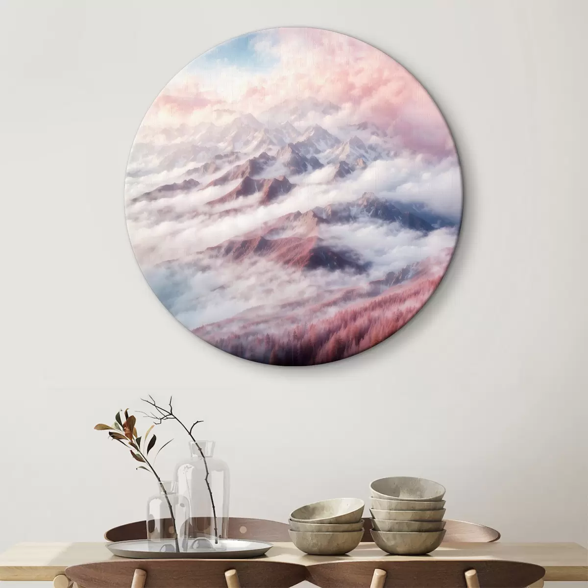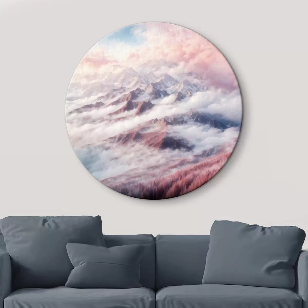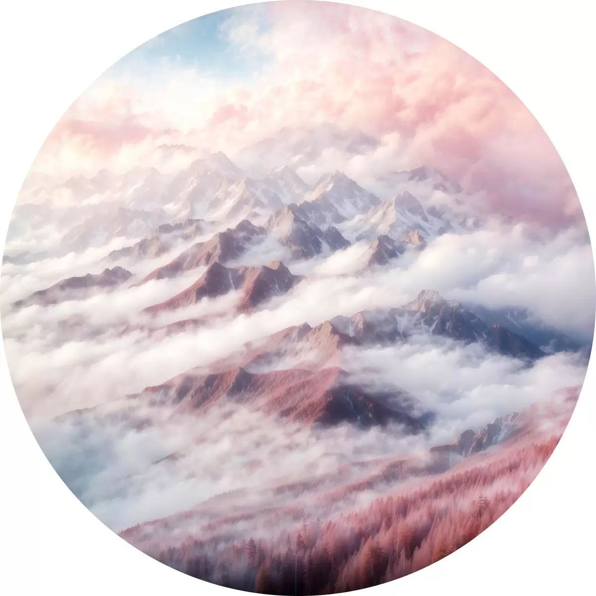 Ronde schilderijen Bergketen met wolken en bomen r38358